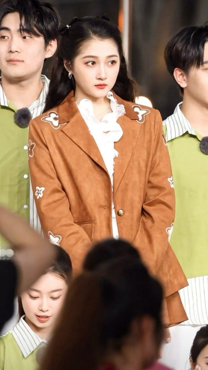 关晓彤五四晚会录制路透生图超能打!棕色套装俏皮又干练,期待第八次的精彩舞台🎤
