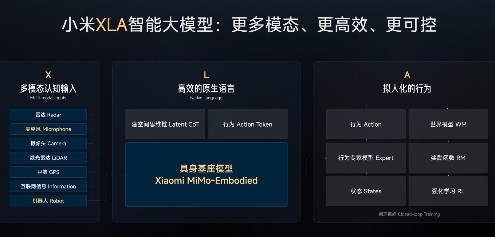 小米新SU7XLA大模型揭秘车是最先落地的具身智能 在最新一期微博科技官方栏目《科技漫谈》中,卫诗婕对话小米智能驾驶基座大模型负责人陈龙,深度拆解了小米新 SU7 XLA 大模型的技术细节与发展逻辑。