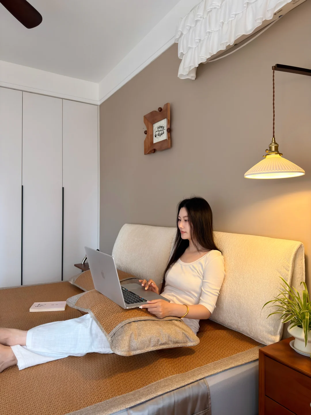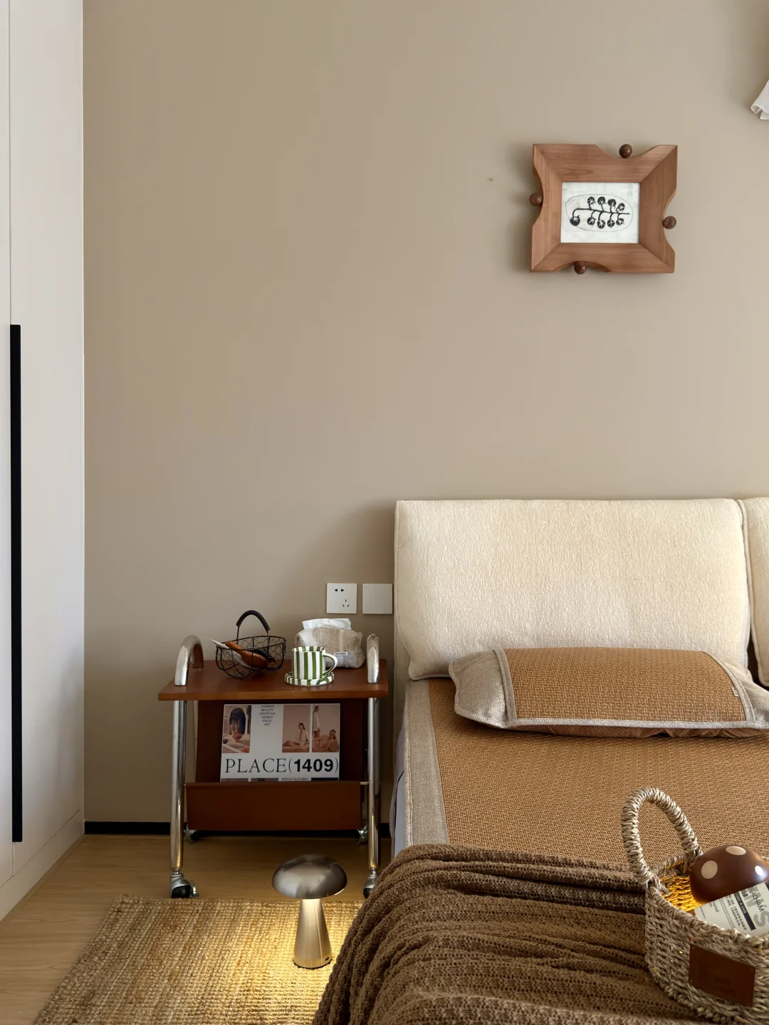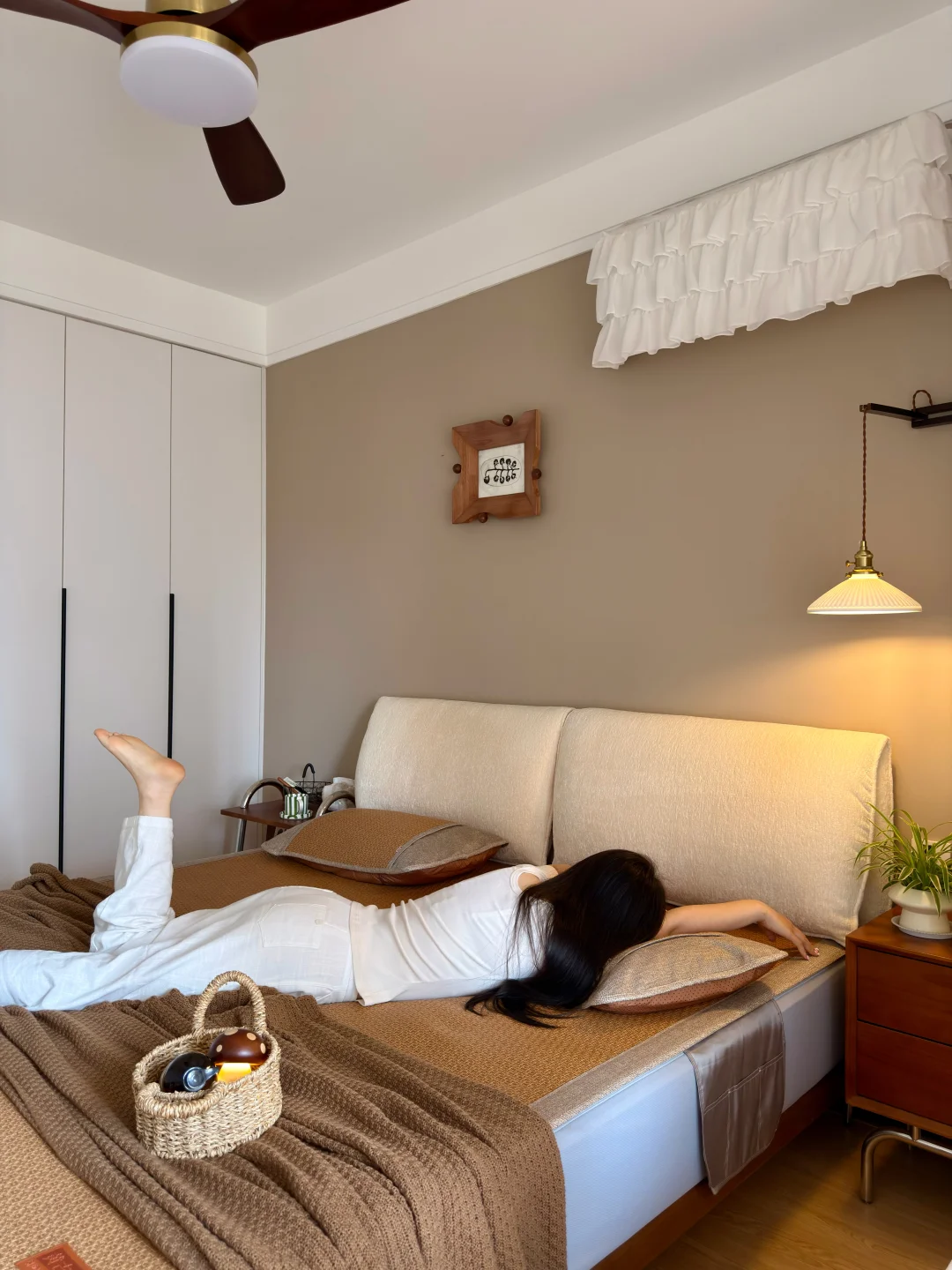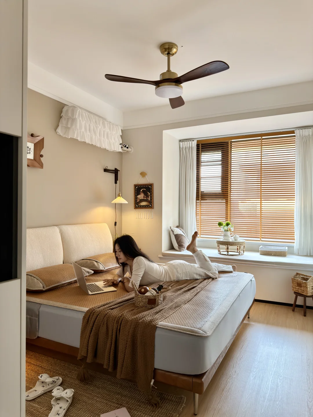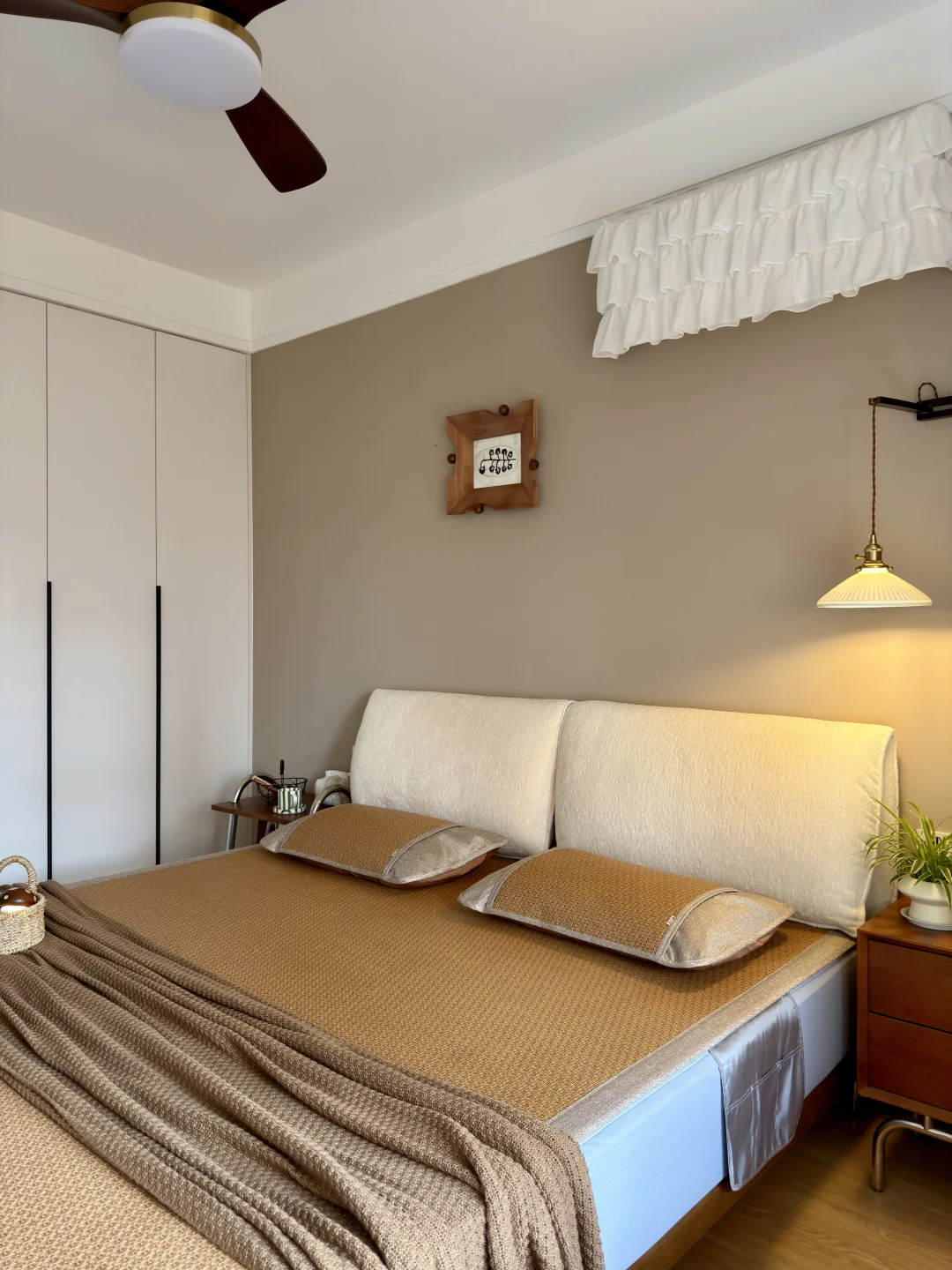 铺上之后,整个卧室的氛围更对了~