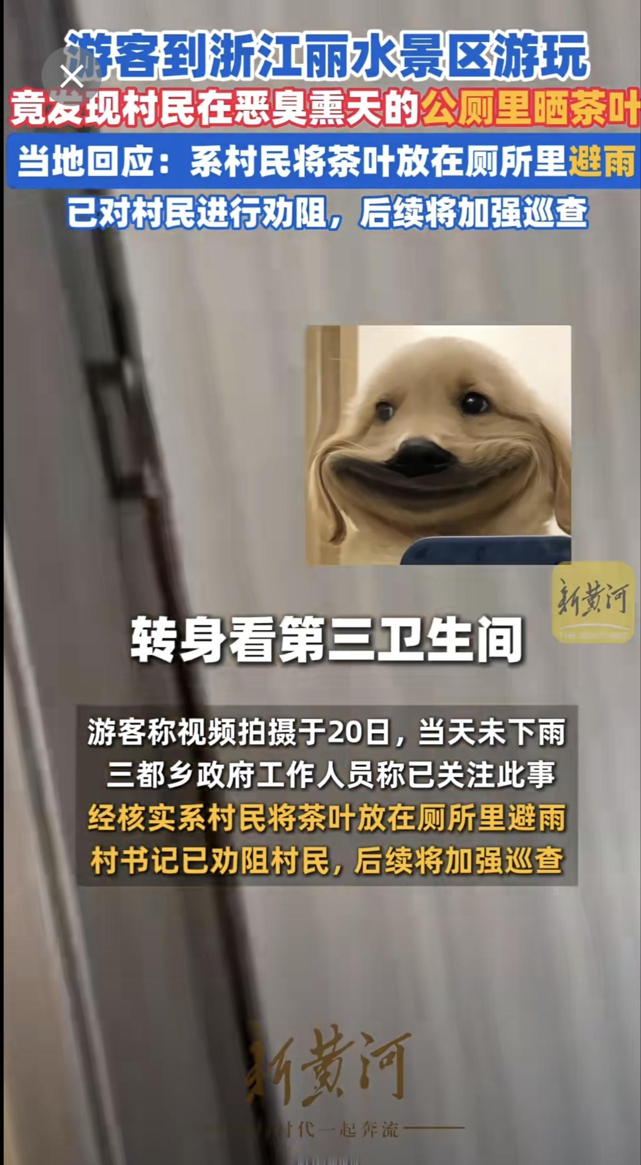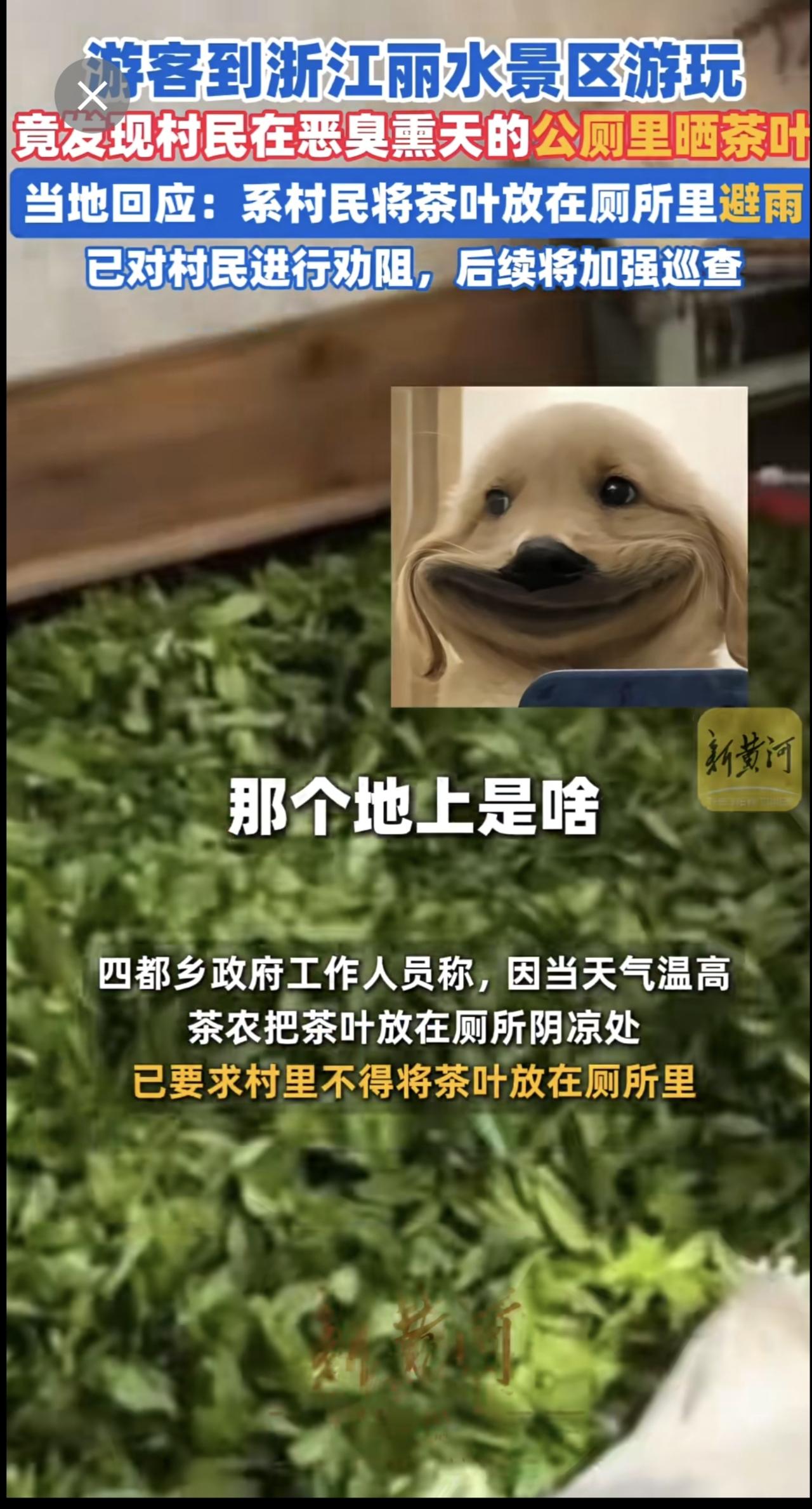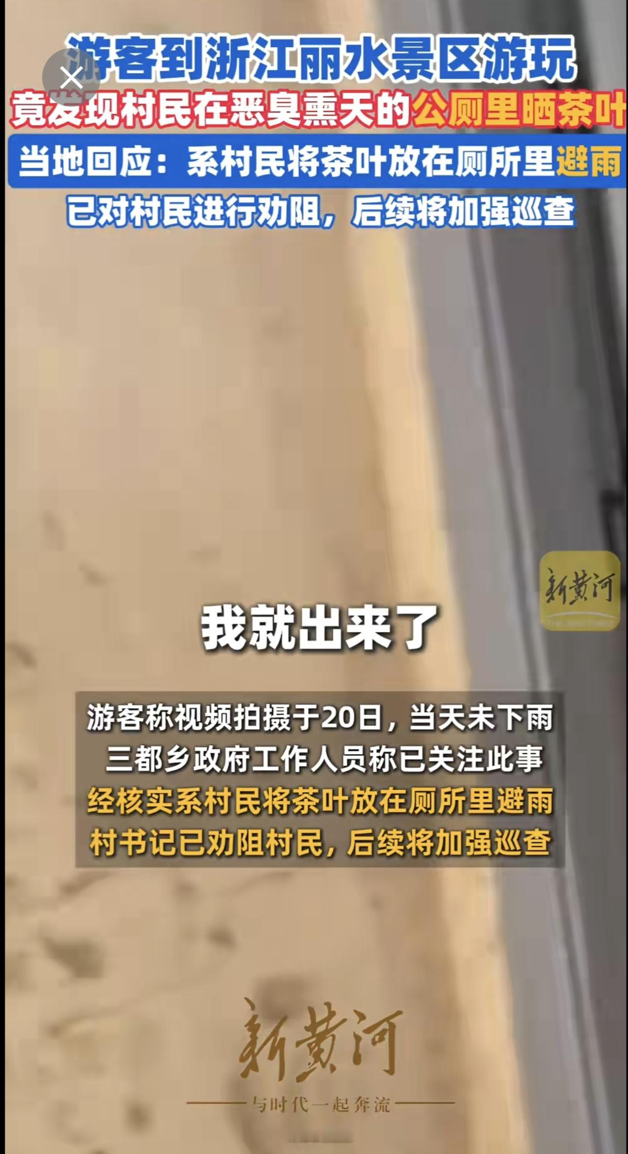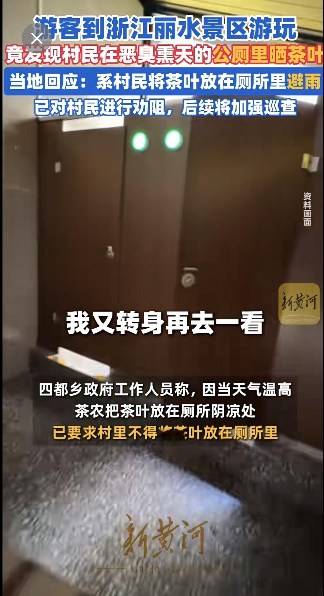 游客吐槽浙江丽水两景区厕所便池旁铺满茶叶,当地回应:系村民将茶叶放在厕所里避雨,