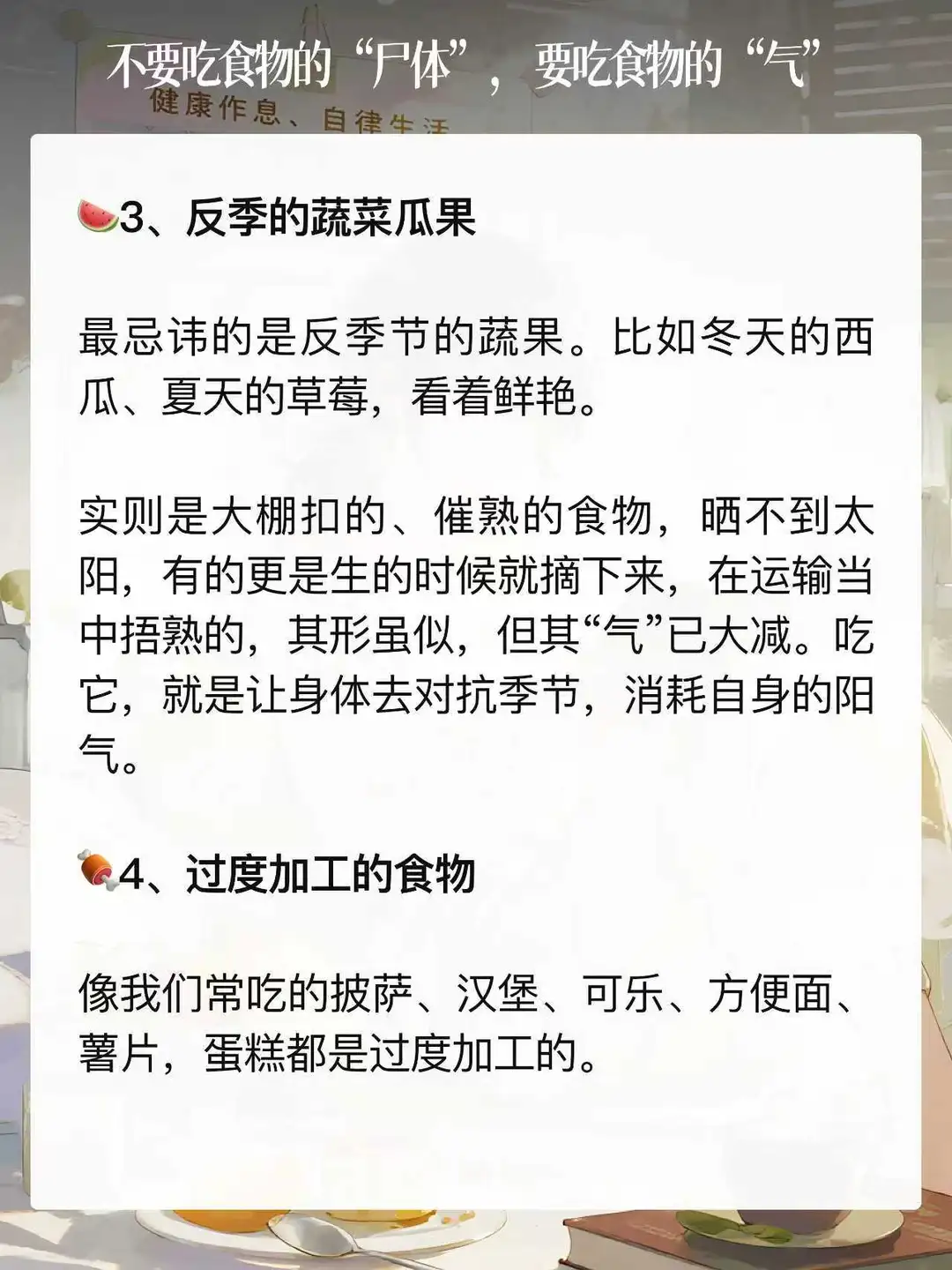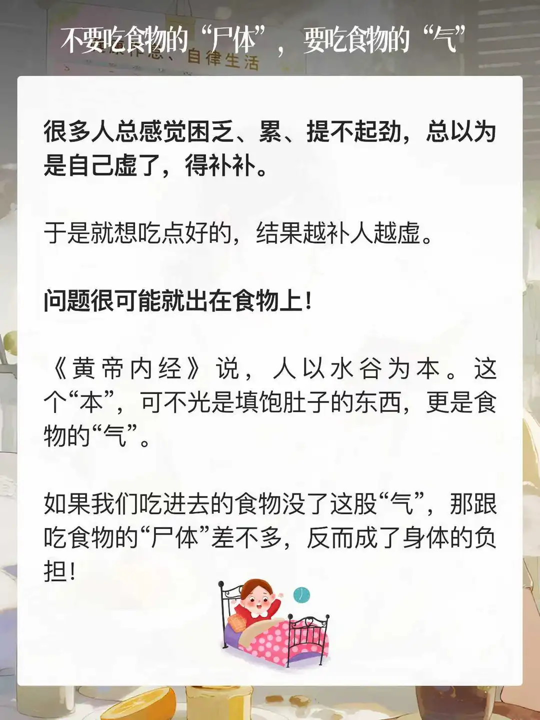 如果我们吃进去的食物没了这股“气”,那跟吃食物的“尸体”差不多,反而成了身体的负担!