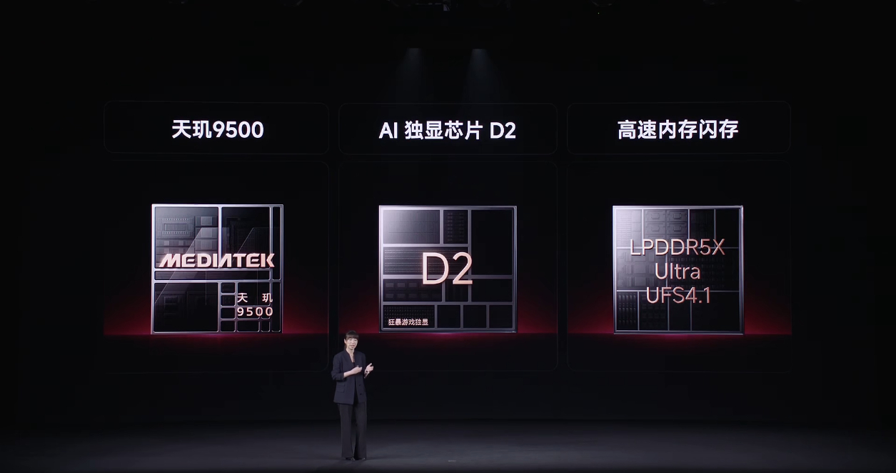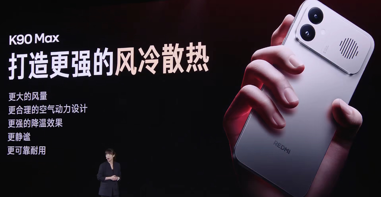 红米K90Max发布会游戏性能魔王来了,这次REDMI K90 Max直接搭载天玑9500正代旗舰芯+电竞独显芯片D2的双芯组合,同时搭配行业最强主动风冷散热,实测100秒可极速降温10℃,这样一来,即便长时间玩高负载游戏也能全程满帧不降频。