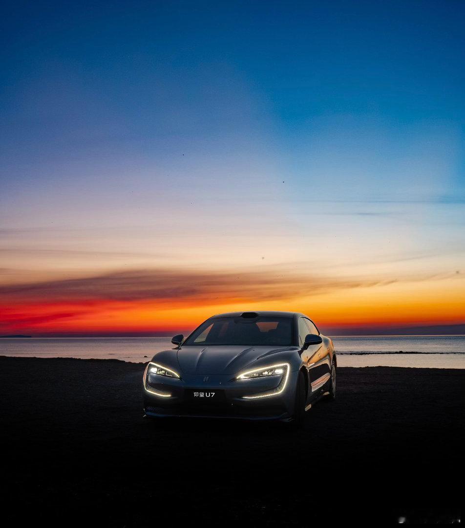 当海平面的橘色晚霞漫过车身,所有线条都被镀上温柔的金边。从点亮的日行灯,到贯穿式尾灯的流光,再到升起的音响单元,光影在车身上流动,比任何滤镜都动人。原来,最顶级的浪漫,是开着它去赴一场山海的约。仰望U7国产旗舰的浪漫