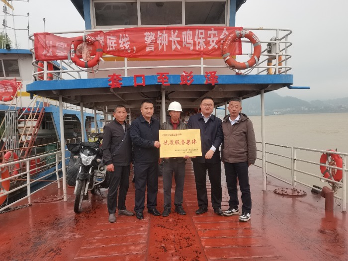 4月21日,宿松县交通运输局等部门负责人来到轮渡上,授予了船员集体“优质服务集体”荣誉称号。