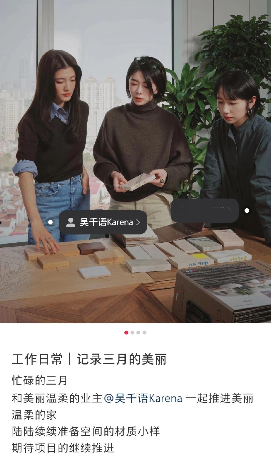 吴千语去年三月份开始找设计师装修新房,亲自挑选房间的样板材质,现在新家装修的就是原木风,法式复古风,很大气,有质感,室内采光也很好。
