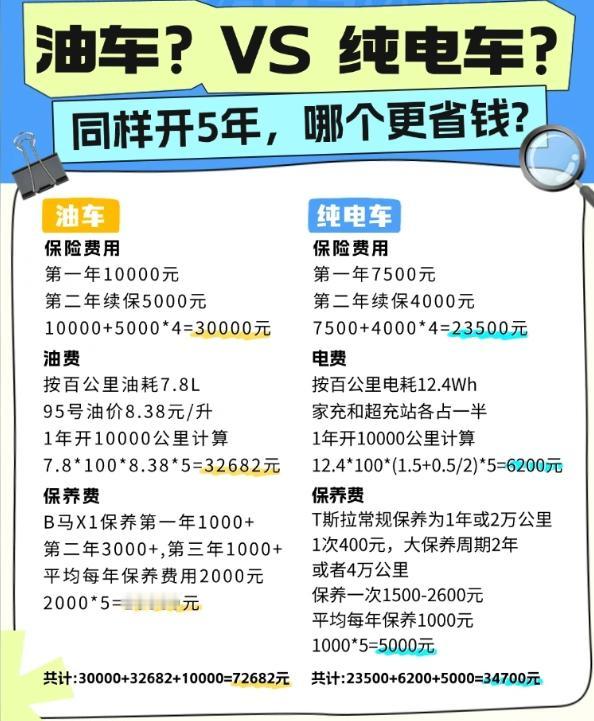 今天从保险、能耗、保养三个维度,实打实计算 5 年总用车开销,三者差价一目了然。