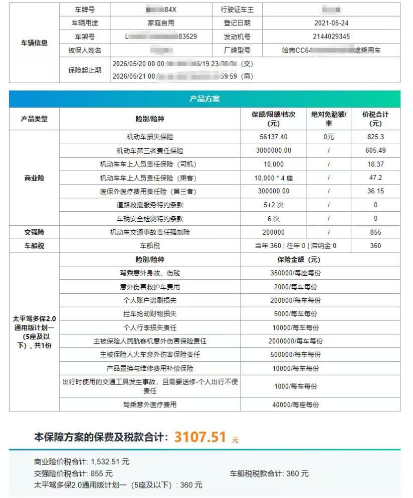 转眼到 2026 年 4 月 21 日续保,打开支付宝一看,所有报价基本全都超 3000 元。