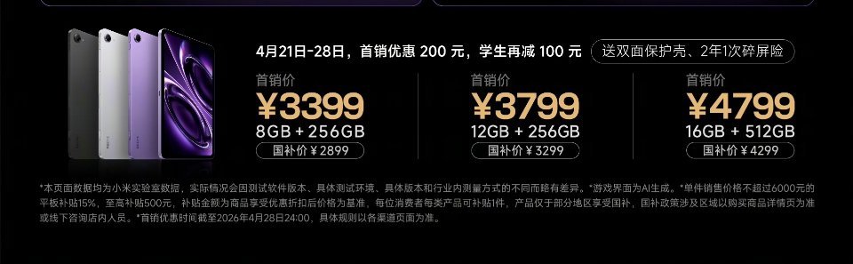 REDMIKPad2正式开售,3399元起,小尺寸性能平板配置拉满。8.