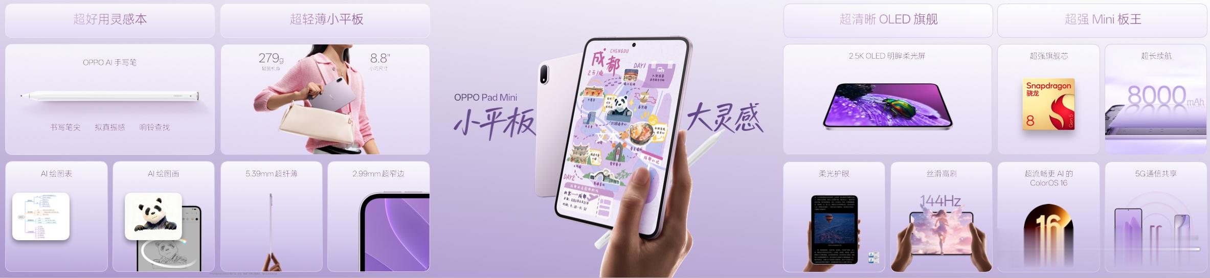 OPPO Pad Mini 搭载第五代骁龙 8 旗舰芯片,可满帧畅玩各种游戏,8000 mAh 大电池持久续航。在互联功能上,只要OPPO手机在身边,无需连热点,无感就有网,省电又省心。