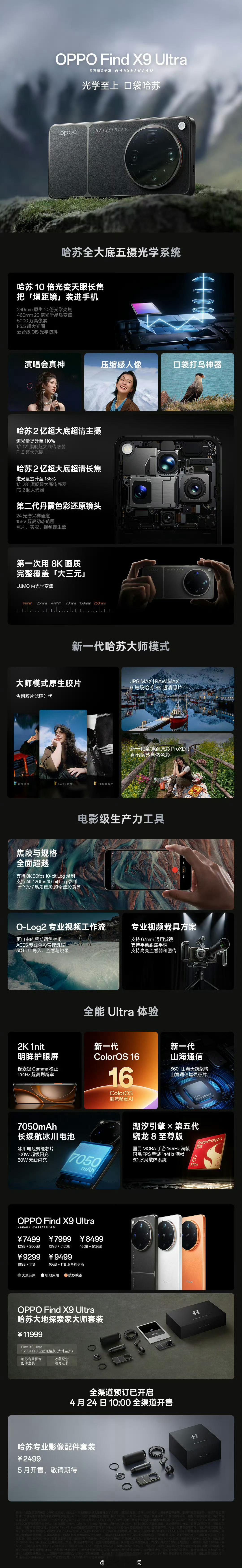 OPPO Find X9Ultra,7499起6.82英寸2K 144Hz四等边直屏,骁龙8EGen5;200MP LYT 901 1/1.12 f/1.5主摄+50MP LYT-600 1/1.95 f/2.0超广角+200MP OV52A 1/1.28 f/2.2 70mm潜望长焦+50MP JNL 1/2.75 f/3.5 10X潜望长焦+3.2MP丹霞原彩,支持300mm增距镜;7050mAh+100W+50W