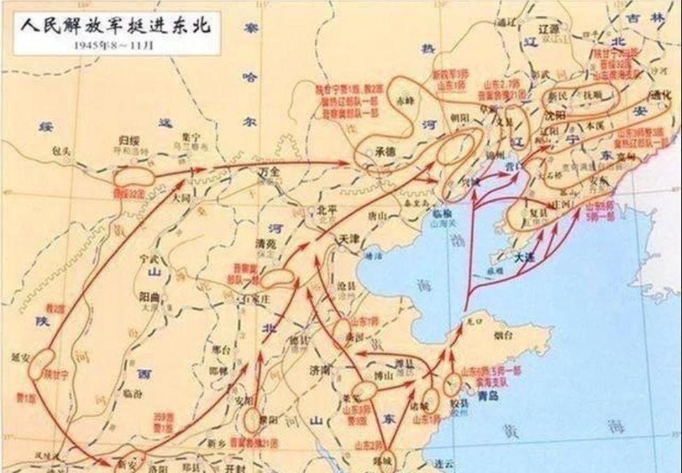 回想两个月前的9月13日,他在华中前线得到苏军占领东北的情报。关东军器械堆积如山,铁路港口尚由红军把守,国民党远在千里之外。机会难得,兵法里讲“先据险要”,黄克诚当即向延安拍电,主张迅速抽调五万至十万精兵北上,“抢在蒋军登陆前打一个大的”。彼时,中央的基本口号是“向北发展,向南防御”,黄克诚的提议看似偏锋,实则与大方略合拍——抢地盘、建基地、集中决战。