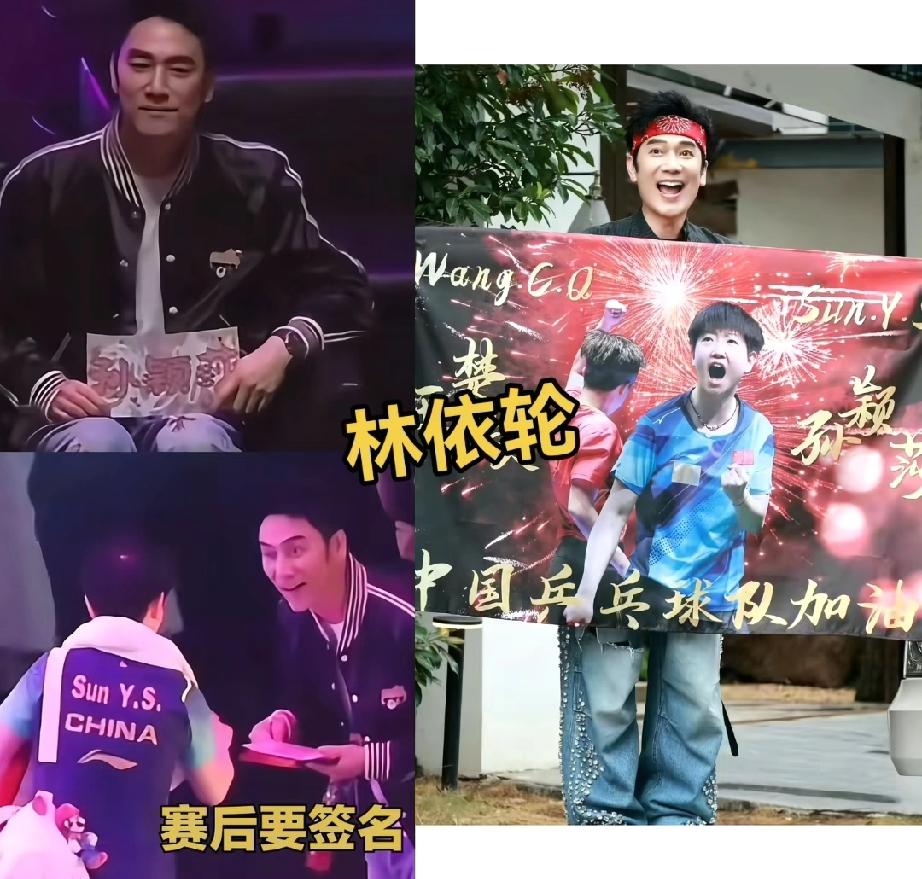 再看,林依轮,现场坐第一排,近距离看莎莎打球,赛后,拿着照片去签名。这真爱无疑。