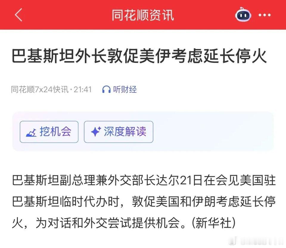 之后,巴基斯坦发声,敦促美伊考虑延长停火,表示愿意为对话和外交尝试提供机会,很明显继续给台阶下;