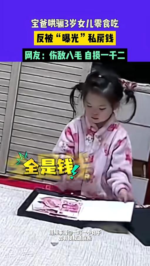 信息来源:《4月17日(发布)浙江,宝爸哄骗3岁女儿零食吃,反被“曝光”私房钱,网友:伤敌八毛,自损一千二(素材来源:@一吖一小丸子 ,编辑:富贵》河南电视台民生频道