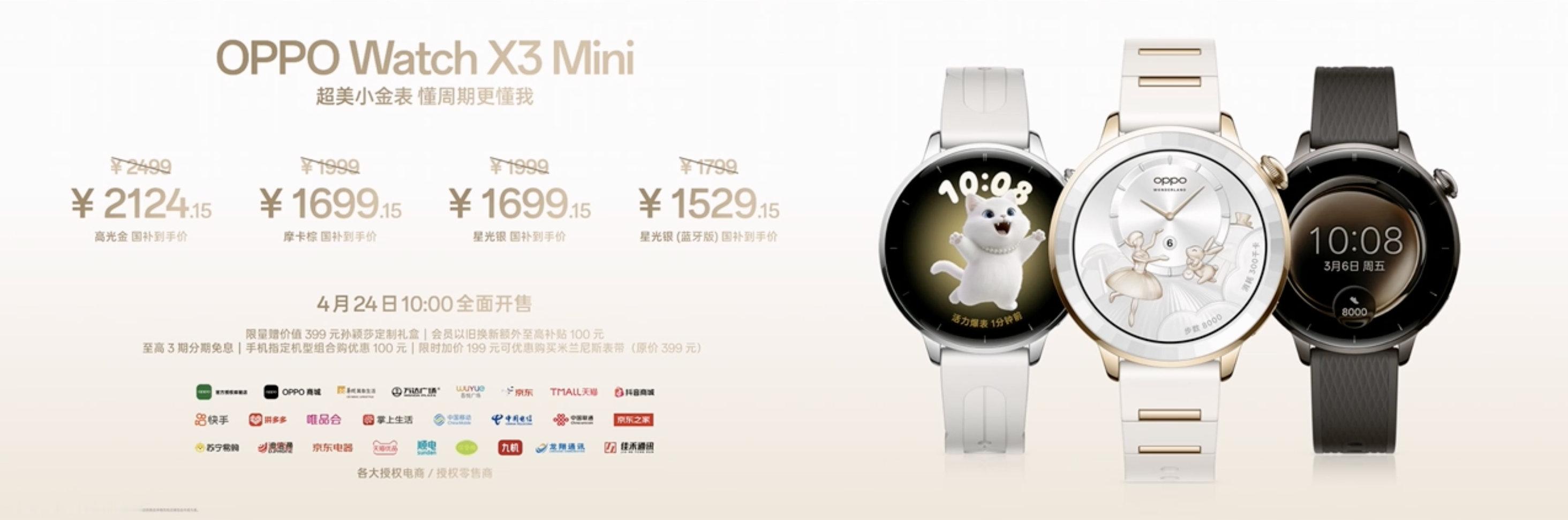 12+256 5299元 丨12+512 5699元16+512 5999元 丨16+1TB 6999元哈苏专业影像套装 1299元⌚️OPPO Watch X3 Mini 售价
