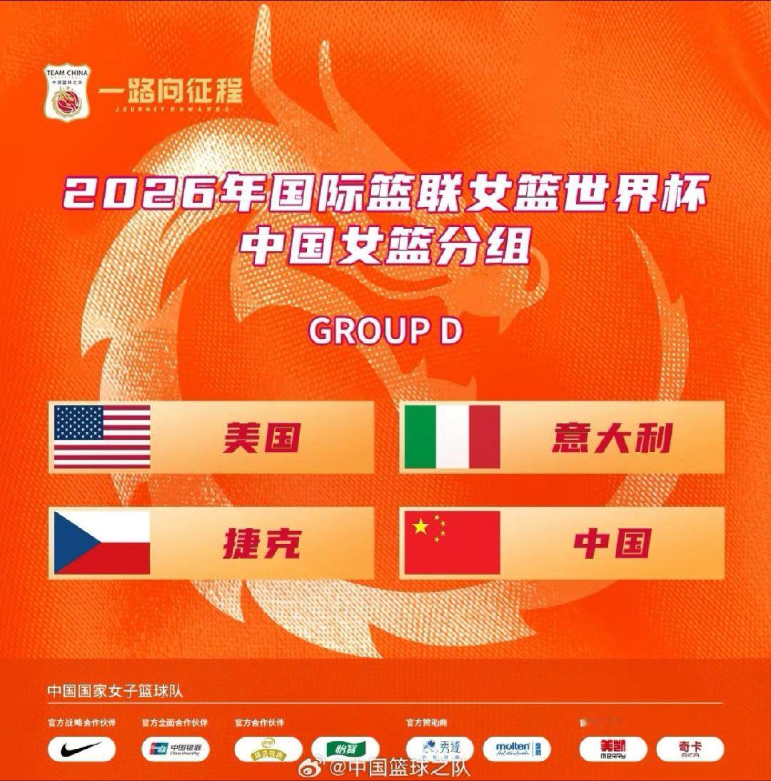 女篮世界杯分组抽签出来了,美国+意大利捷克两支欧洲球队。