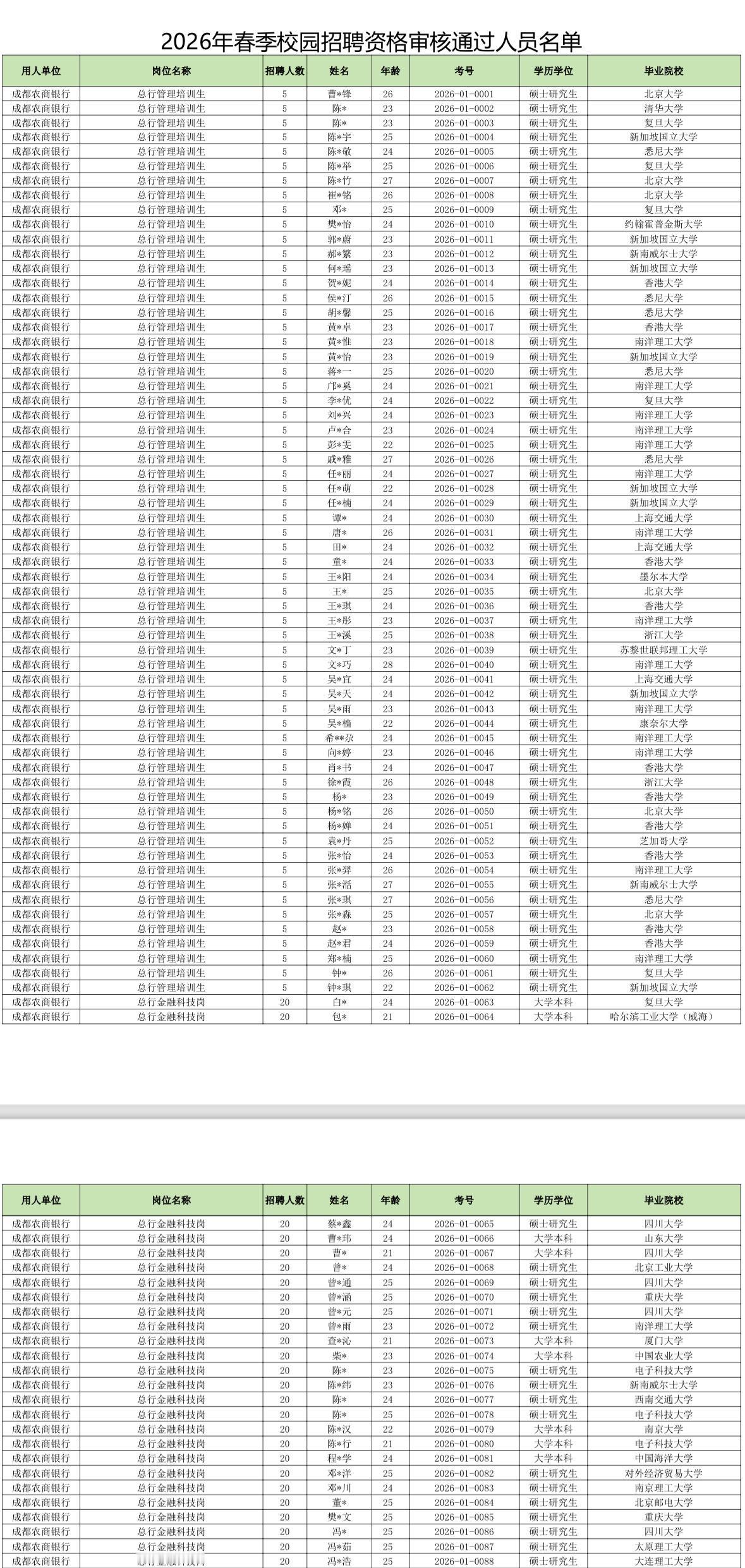 名单公示!成都农商行2026春招资格审核通过名单