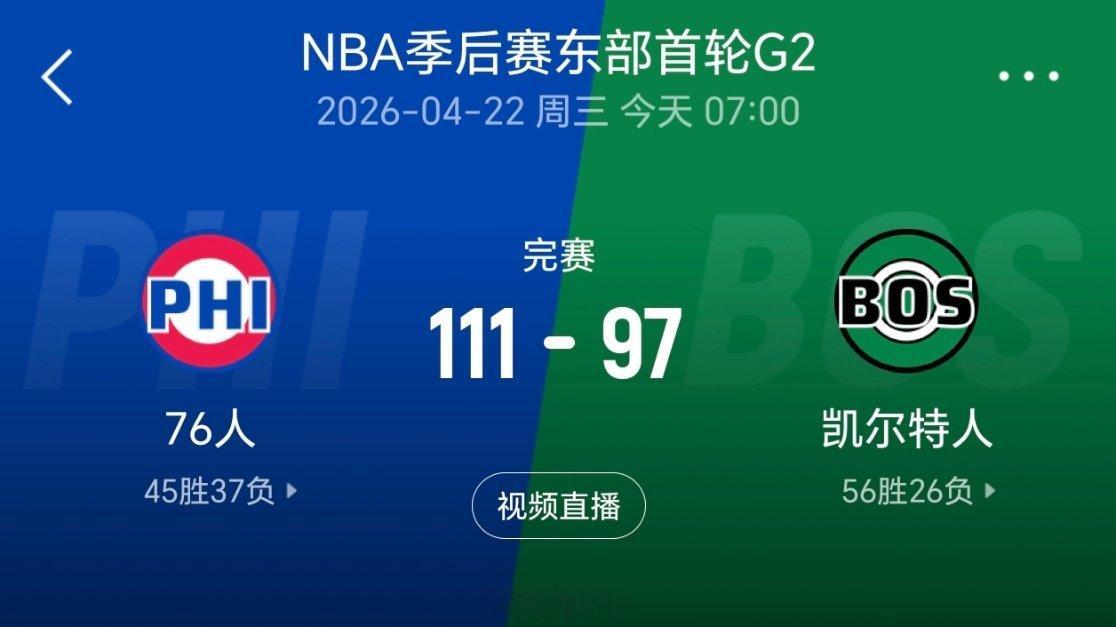 76人拿下凯尔特人!系列赛大比分搬成1-1!!!