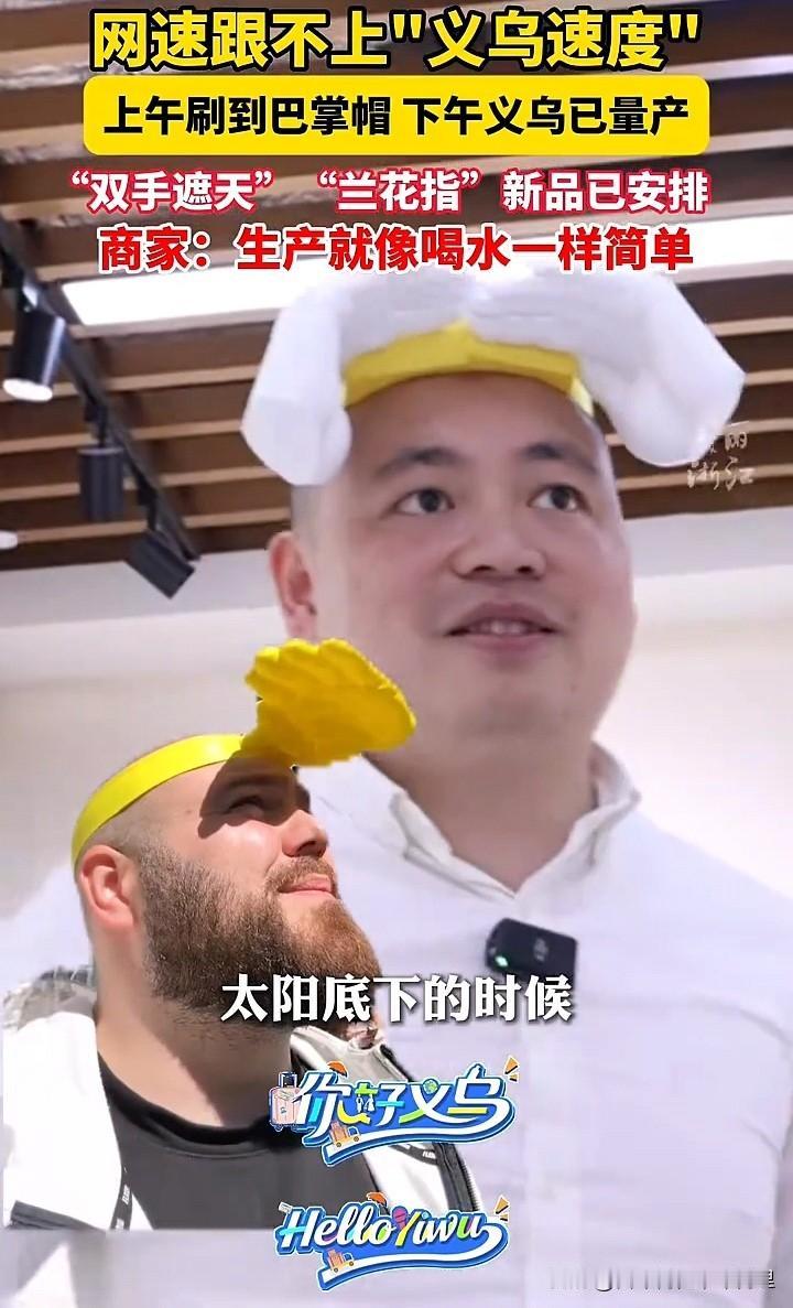“巴掌遮阳帽”海外爆红,义乌半天完成量产 网友:“义乌速度”比流量跑的还快 近日