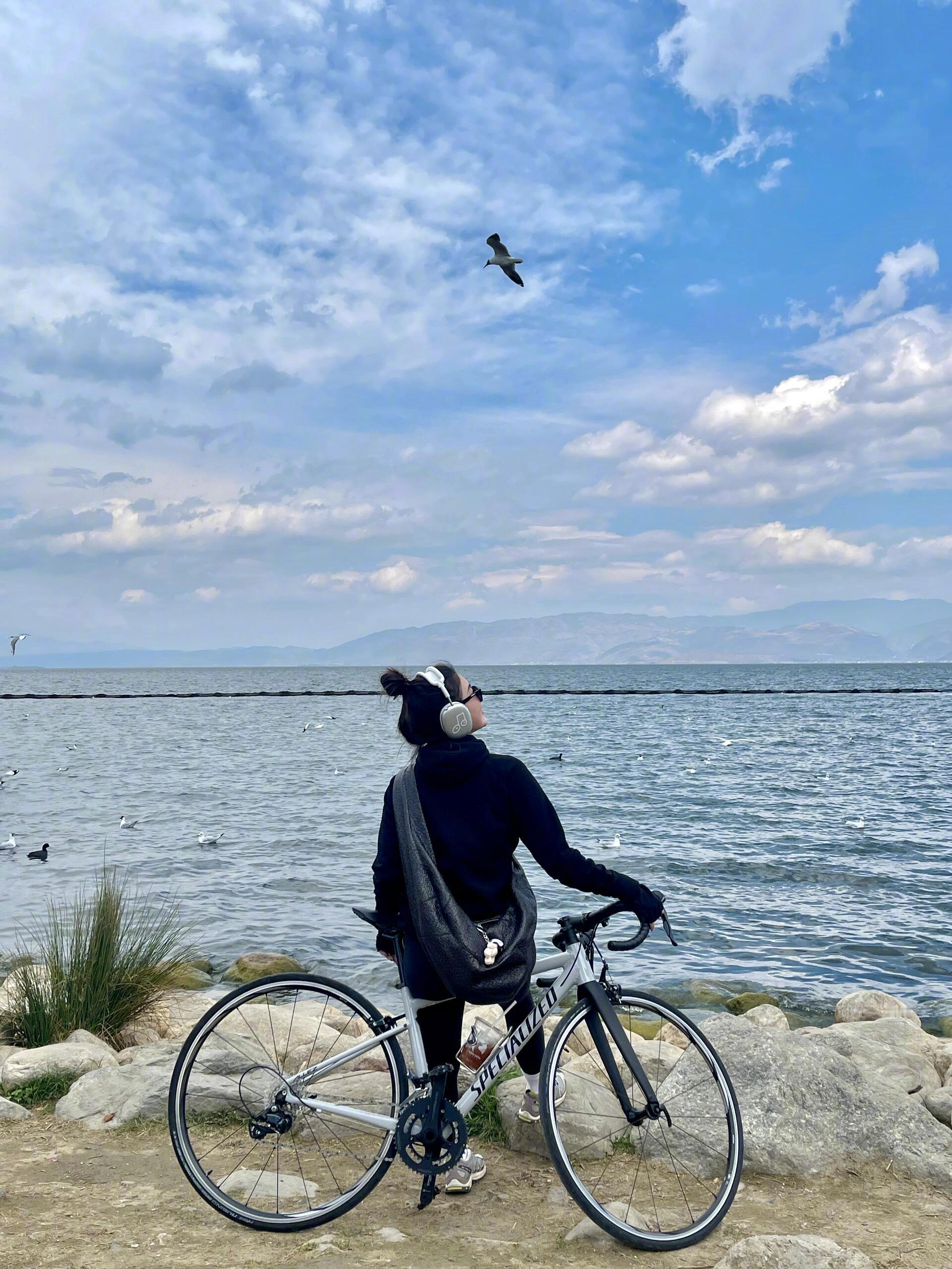 环洱海骑行一直在我的愿望清单🧾里,这会趁着大好春光,租上骑行工具🚴🏻♀️说走就走!整个过程一路沿洱海有苍山🏔和海鸥为伴,沐浴阳光同时还能闻到阵阵花香。累了躺在草坪,感受土地的热量,不止一次在心里发出感叹:真好~又是被大自然治愈的一天。