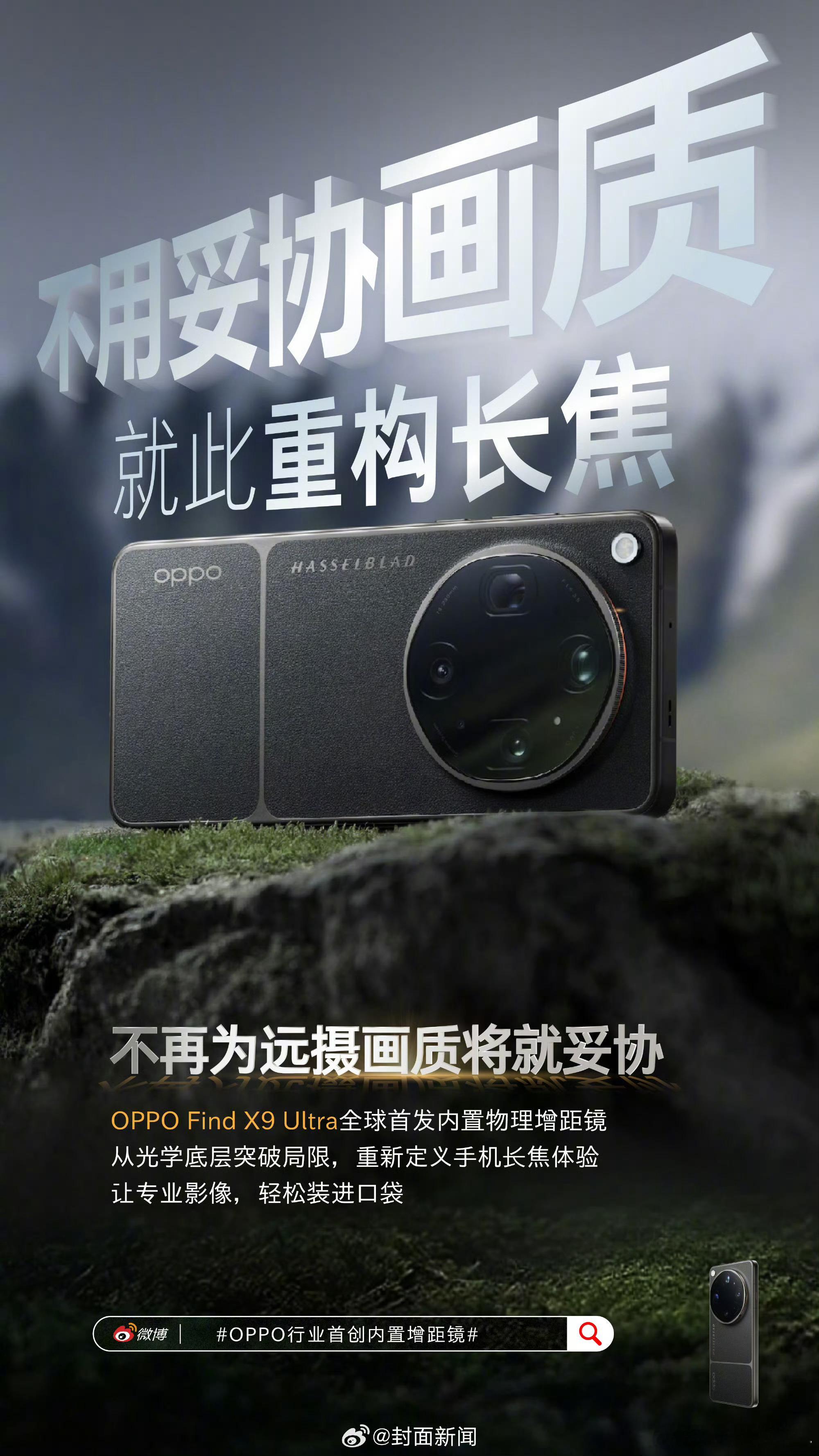 OPPO行业首创内置增距镜哈苏 10 倍光变天眼长焦,原生就能拍 5000 万像