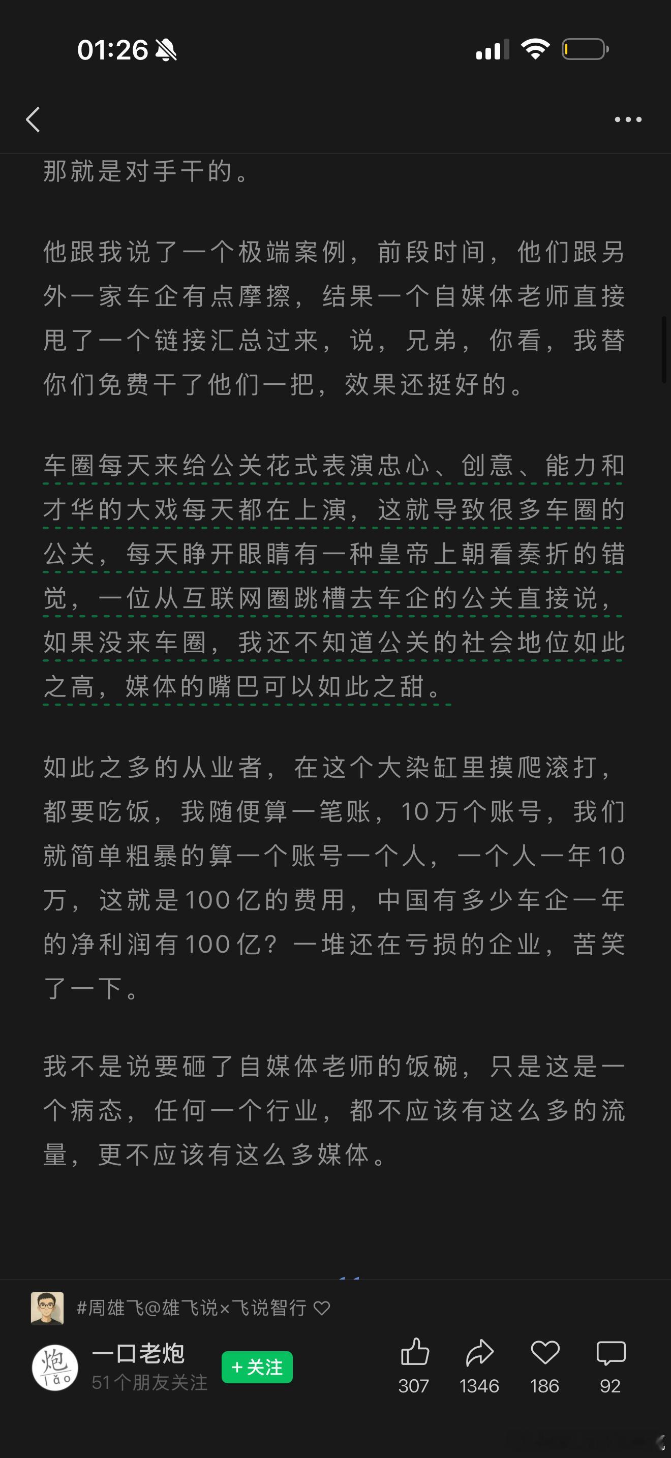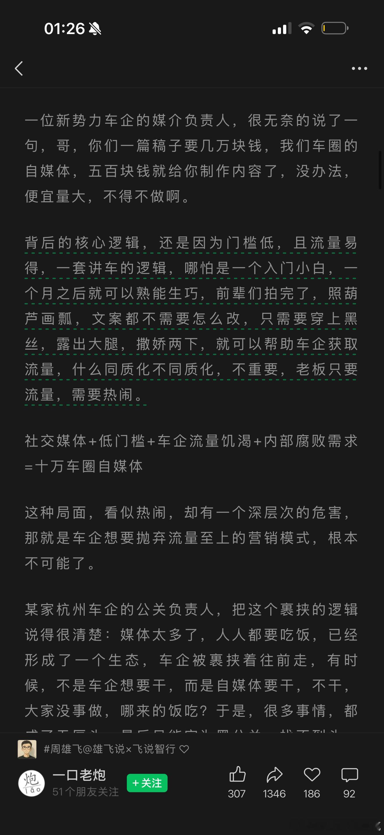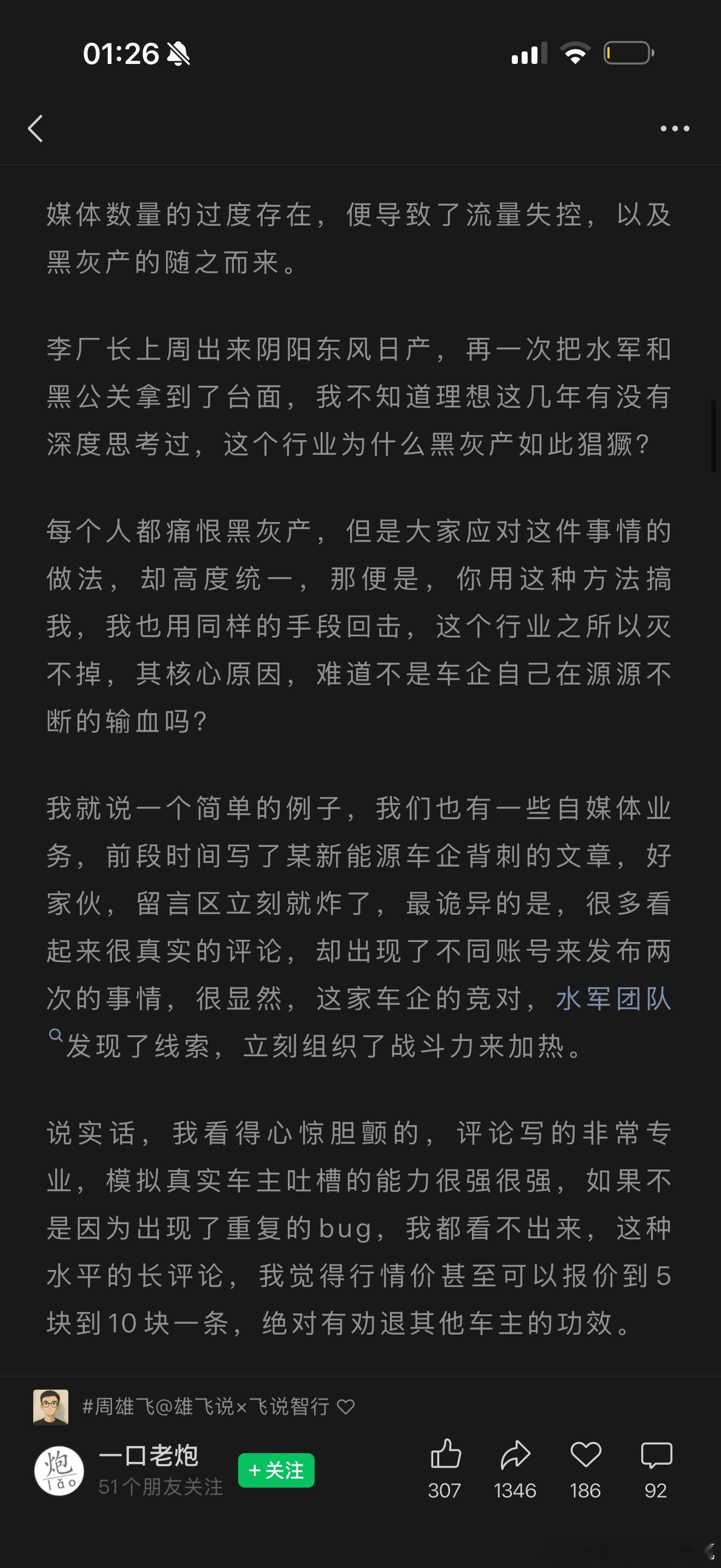说的挺有意思的车企的负担确实太重了特别是遇到那些每天拿着把柄要挟要投放的号