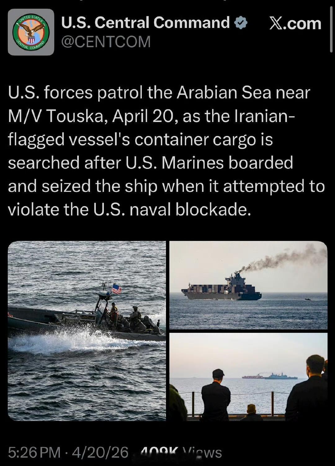 美国中央司令部还专门为此发文大加赞赏……