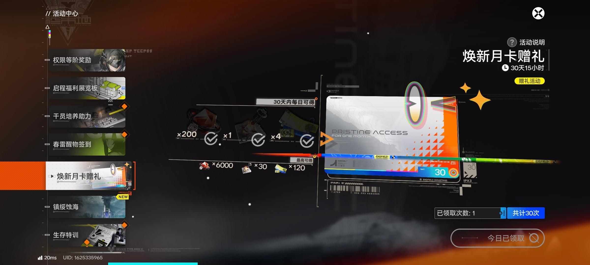 明日方舟终末地1.2新版本已开启,上线就可以【免费领取一张30天焕新月卡-小月卡——而且月卡的奖励可以和原有的奖励叠加哦】——呜呜呜,谁家游戏这么贴心?这么宠?是他是他,就是他,明日方舟终末地❤️❤️❤️