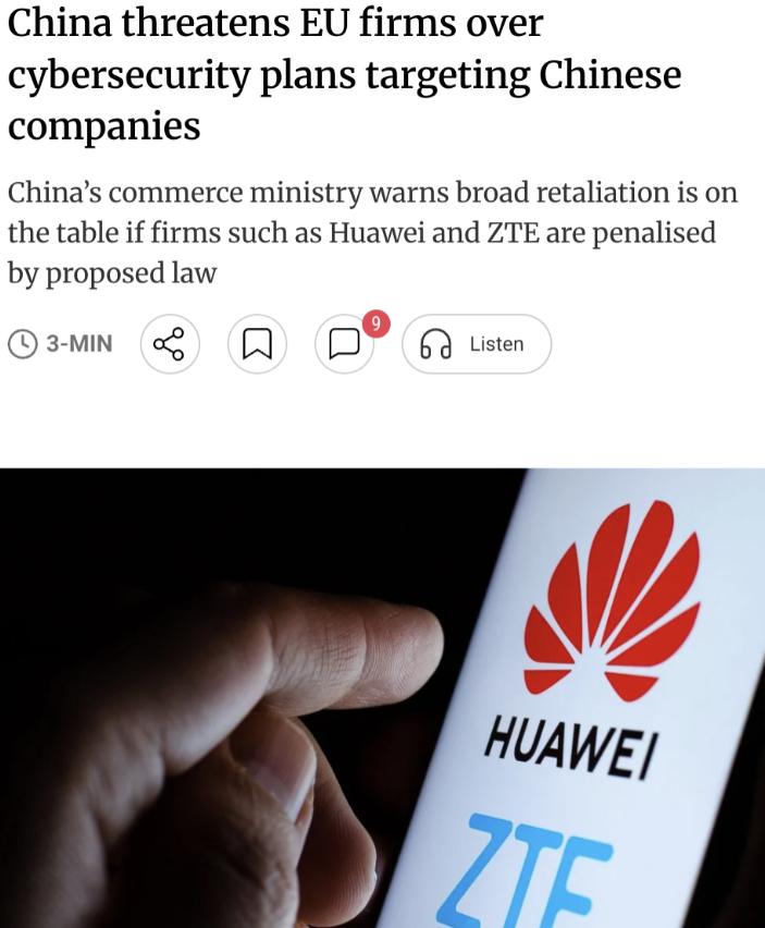 外媒爆料!中国 30 页文件给欧盟划死红线:敢列中国为网络安全风险国、给中企贴高风险标签强拆设备,中方直接调查反制!