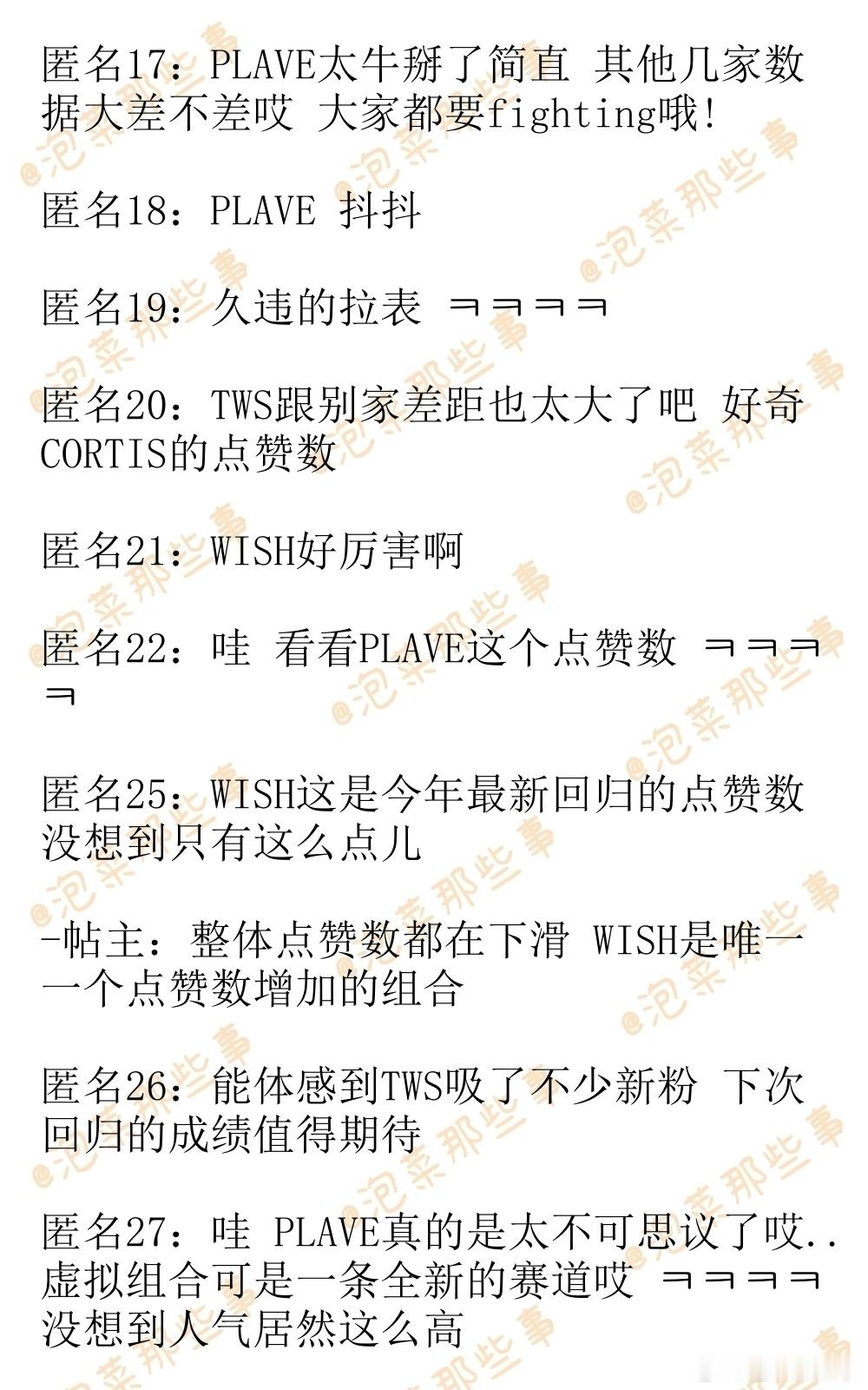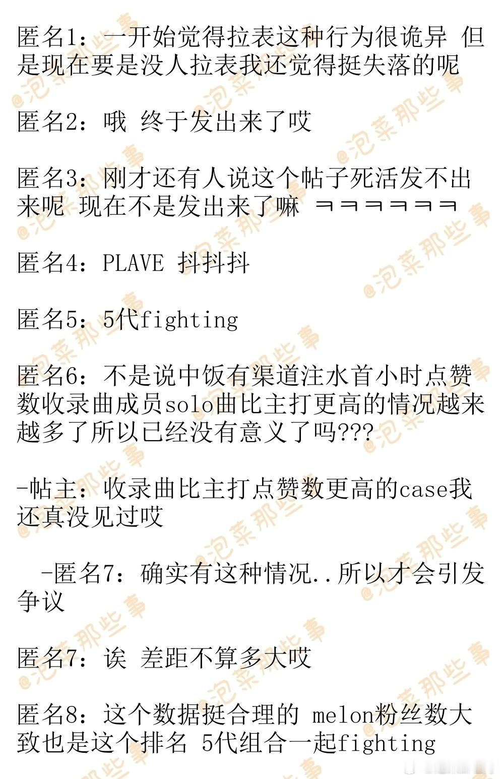 🔥韩网热帖评论翻译🔥5代男团Melon首小时点赞排名1.PLAVE 171682. BOYNEXTDOOR 107103. NCT WISH 95004. RIIZE 88555. ALD1 57576. ZB1 48357. TWS 31548. CORTIS 1618cr.instiz