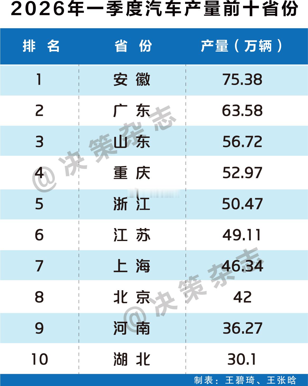 最新发布!一季度汽车产量十强省排名:安徽第一,广东第二