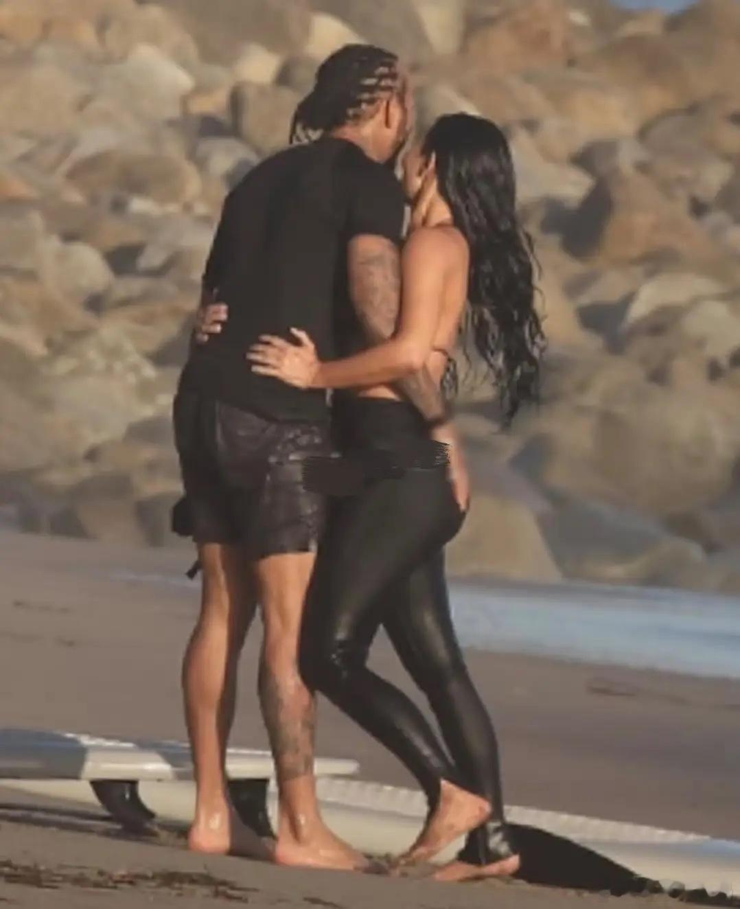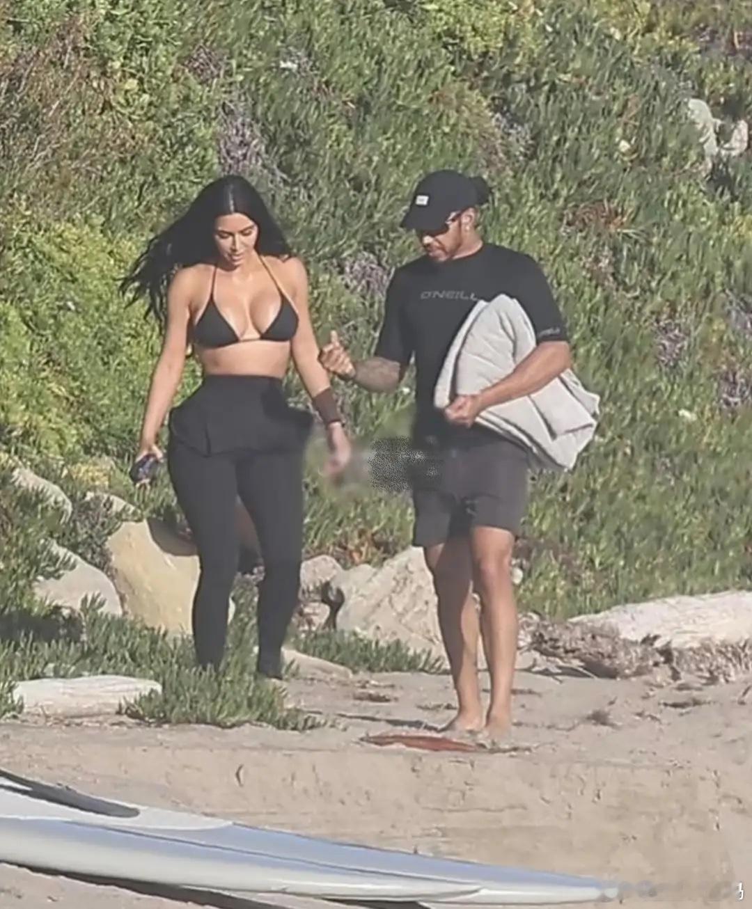 卡戴珊与男友海滩戏水,穿比基尼身材曼妙,汉密尔顿个子不高!