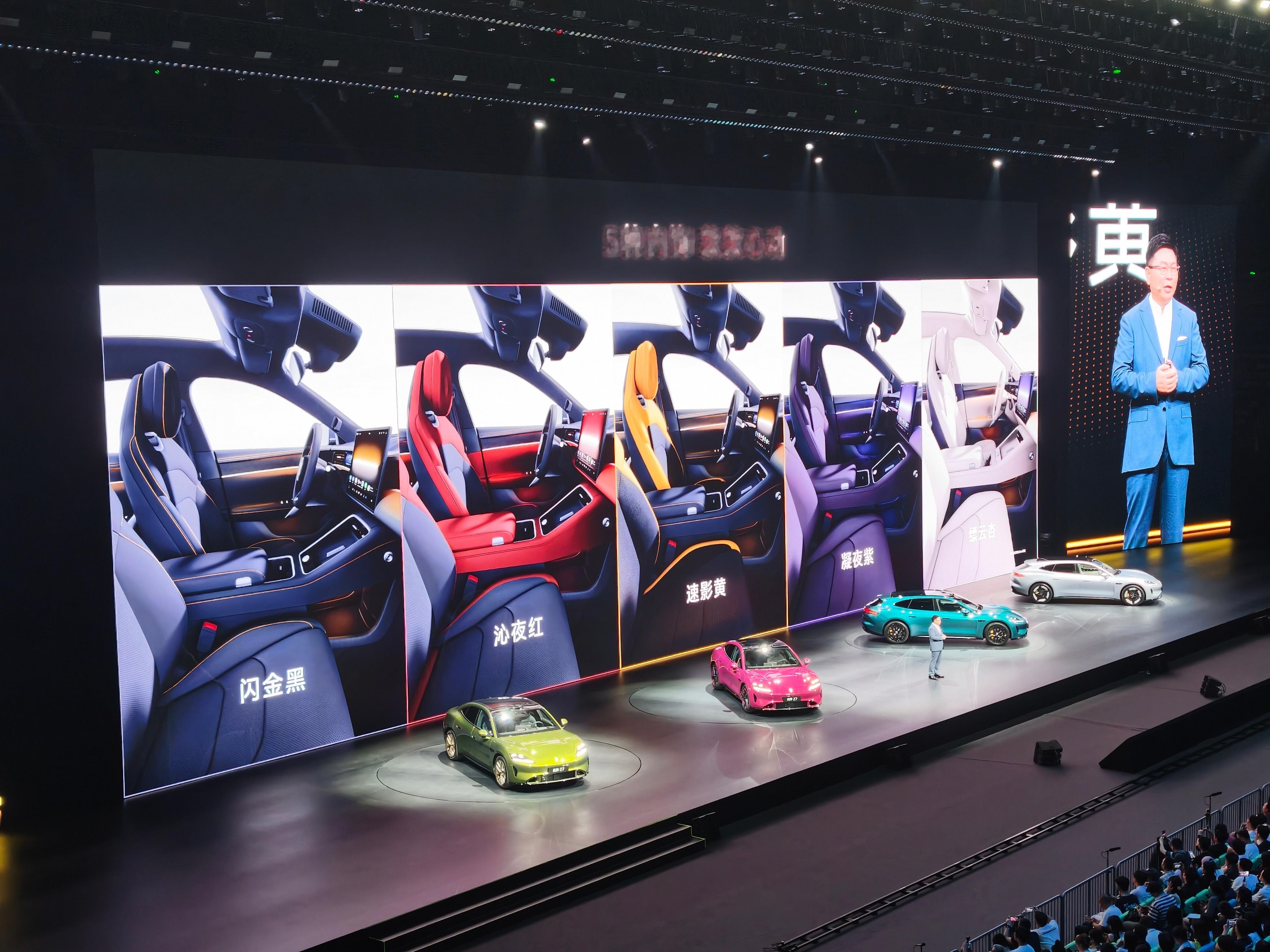 鸿蒙智行春季新品发布会 Z7这个电光紫粉是真的帅啊,配色都是年轻人喜欢的。还有5