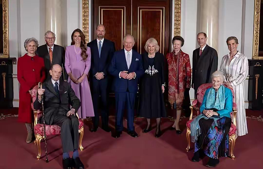 全家福中卡米拉的站姿一点不符合“王后”的样子,倒是威廉和凯特往那一站就让人们一眼锁定,这就是门面。