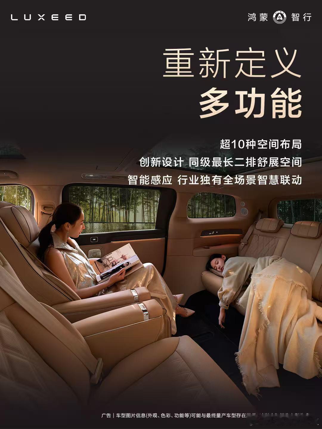 智界V9凭借混动MPV最大舱内空间与行业最大装载空间,打造“座座私享公务舱”的均权舒适体验。二排零重力座椅支持45°优雅出入,90°自由观景,180°面对面相伴旋转模式,搭配可一键放倒的三排座椅,轻松实现超10种空间布局。座舱首发搭载全新“环宇”三联屏、二排超大吸顶屏,可实现手势控制、语音控制,全场景智慧联动,堪称“移动的鸿蒙智家”。同时,智界V9将尊崇隐于非凡日常,实现行业领先的静谧体验与最高标准隐私保护,并创新搭载智能交互式侧门光毯智界V9创新搭载智能交互式侧门光毯、全新一代HUAWEI XPIXEL百万像素智慧投影大灯,尊崇仪式感拉满,让每一次出发和抵达都尽显从容礼遇。鸿蒙智行发布会