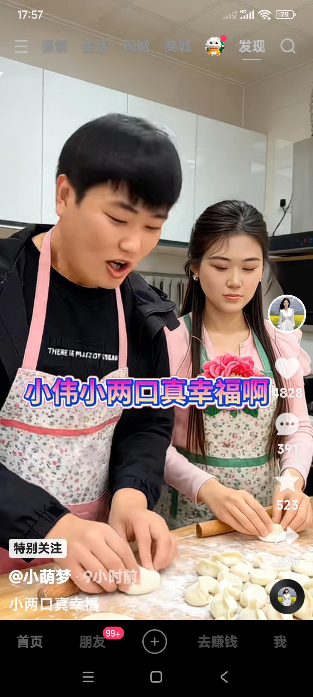 多么幸福的小两口。 朱小伟和媳妇陈萌,边包着饺子,边抒情地唱着歌儿。 可以说