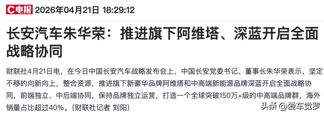 大型车企集团内部整合,已是应对激烈竞争的普遍动作。长安这一步,方向明确:把有限的资源集中到能打硬仗的品牌上,用规模换生存空间。阿维塔有品牌高度但量未起,深蓝有销量基盘但定位偏中低端,二者协同后,研发和采购成本有望显著下降,渠道和制造端也能共享效率。150万辆的中高端品牌群目标并非空中楼阁,但挑战同样清晰——整合不是简单的拼凑,品牌区隔、团队融合、渠道协同,每一项都是硬仗。至于阿维塔的IPO,节奏调整未必是坏事,梳理清楚业务边界再上市,反而可能更受资本市场认可。长安这次动刀,够果断,接下来就看执行了。@中国长安汽车集团