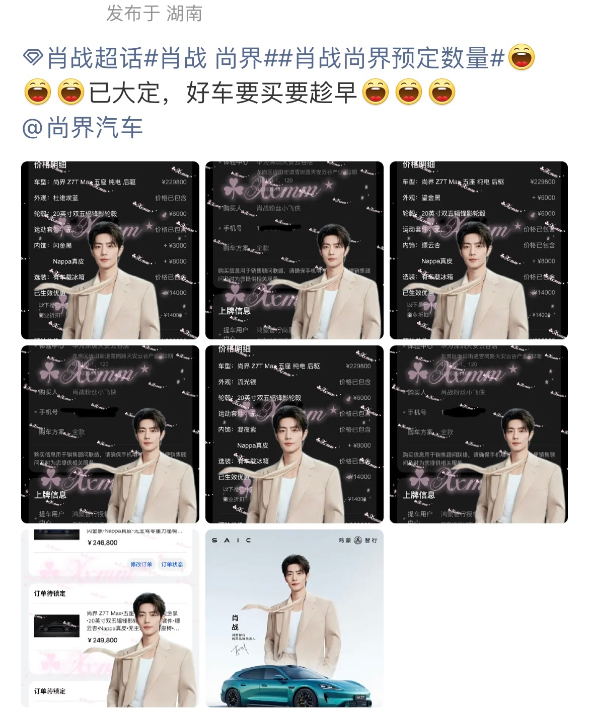 肖战粉丝太有实力了我勒个几十万的单子说下就下,一个一口气2台,一个一口气3台尚界