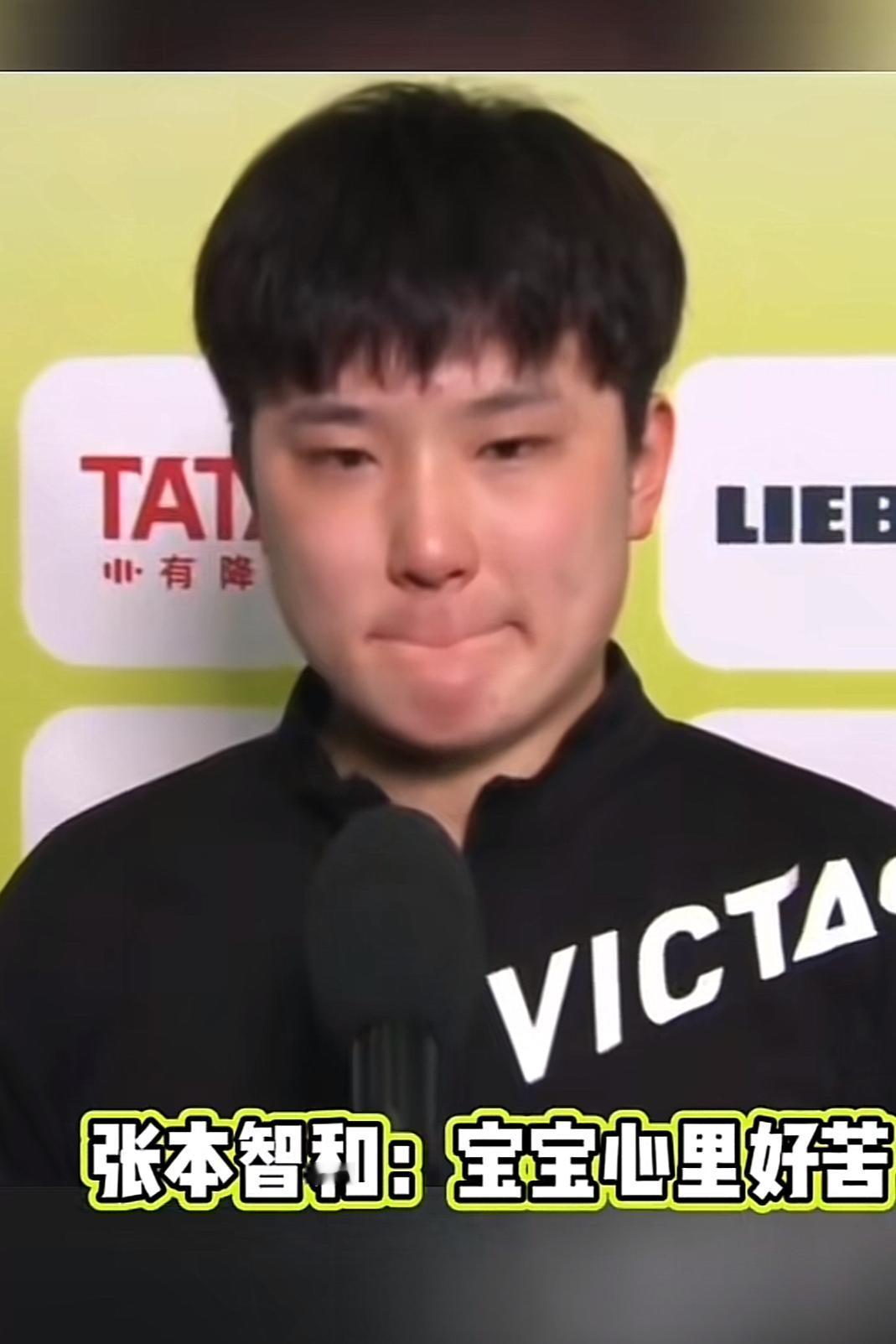 图六,日乒“一哥”张本智和,曾经12次败在王楚钦拍下,每次接受采访时都会留下痛苦的泪水。