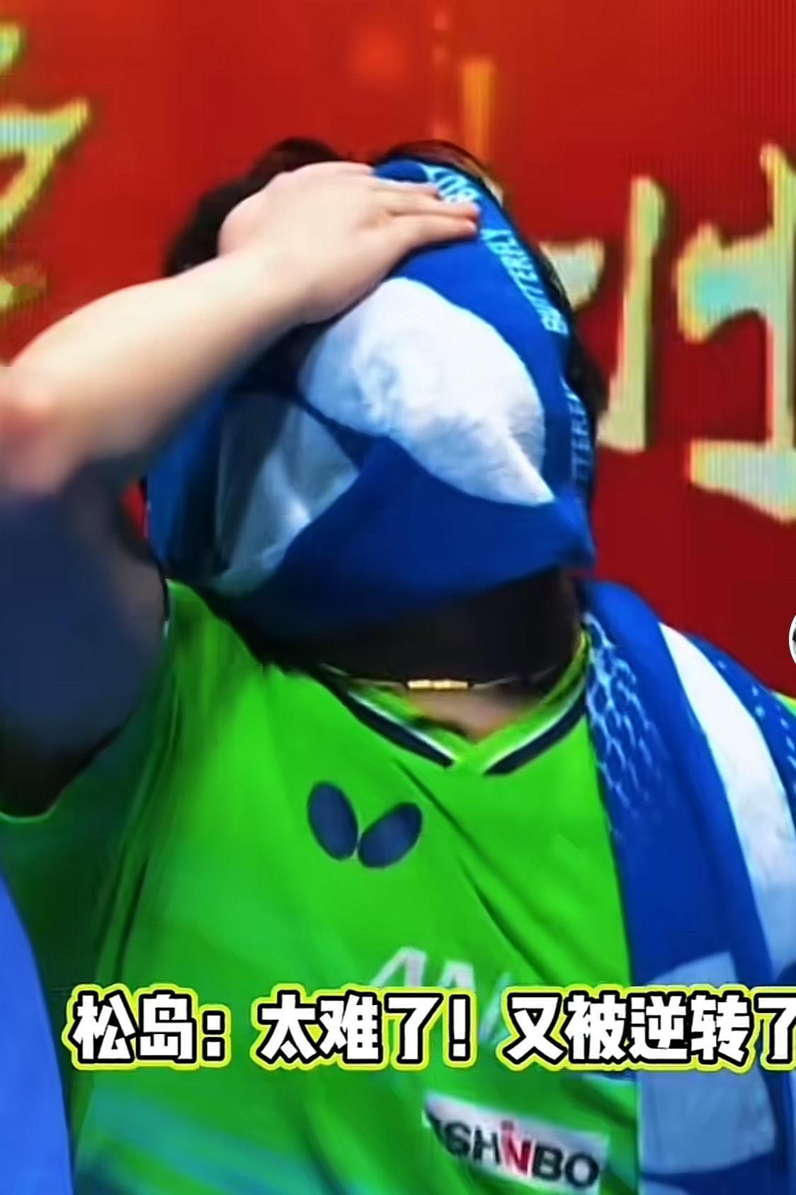 图一,图二,日本小将松岛辉空,被王楚钦打败后,气得用手直打球拍,然后用毛巾掩面痛哭。