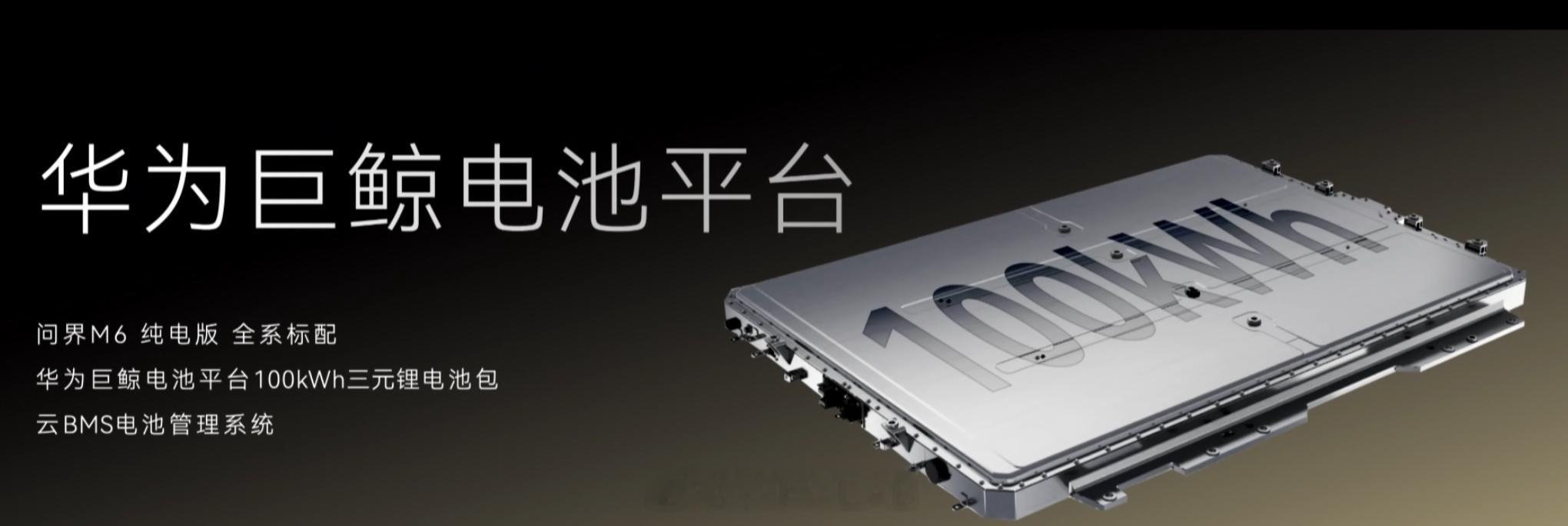 问界 M6 纯电版全系标配华为巨鲸电池平台 100kWh 三元锂电池包,CLTC