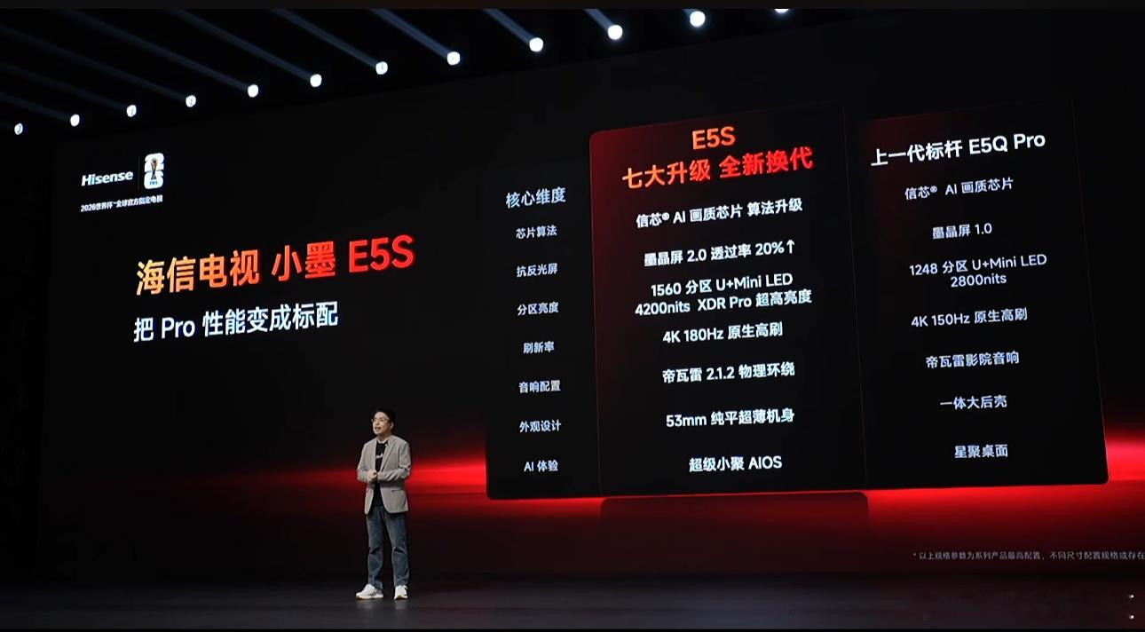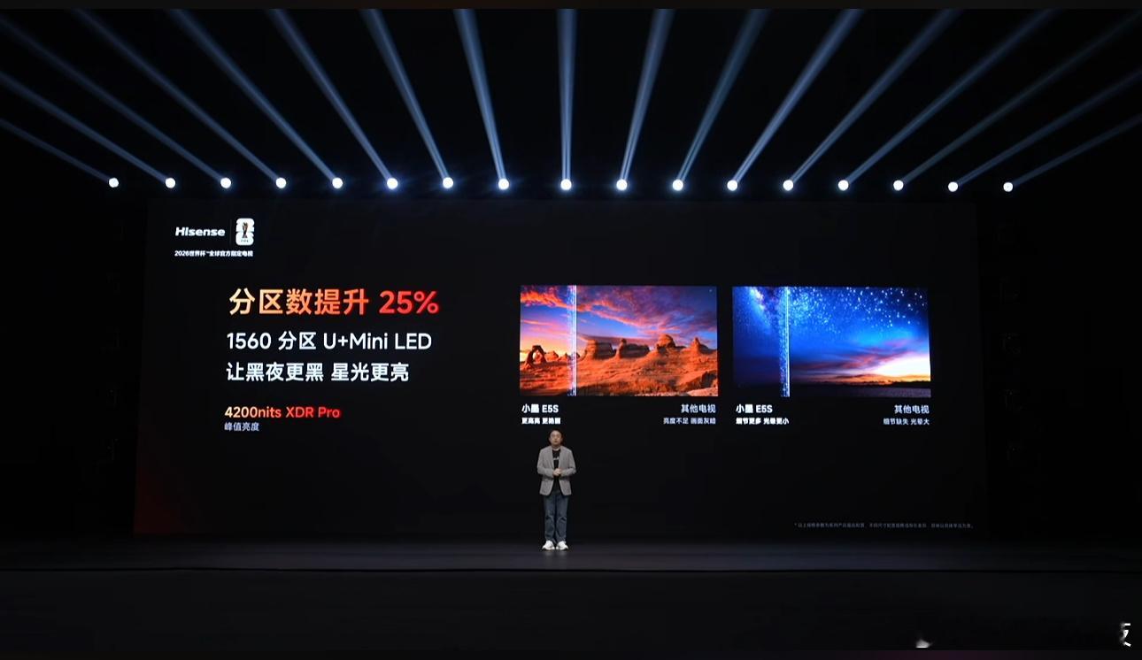 2026海信电视 小墨E5 分区数提升 25%!重点是1560 SIX U+Mini LED,让黑夜更黑 星光更亮!还有在声音方面,专利指向性号角环绕音,包裹咱们的私人剧场!可以说,小墨E5提升太大了!