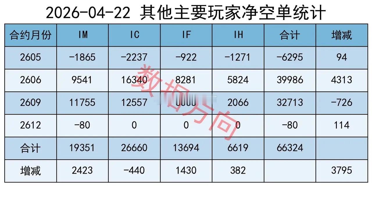 合计对IH、IF加空1006手,合计对 IC、IM加空4565手。操作完成后,共持有净空单124550手。