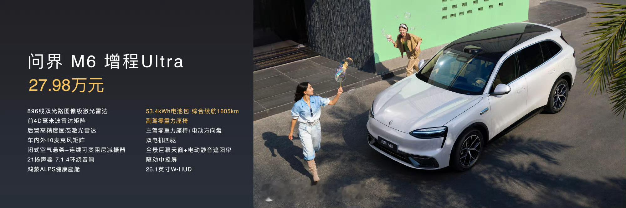 问界M6起售价25.98万元问界 M6 的价格 刚刚好好卡在朋友买车预算里现在纠结买增程 MAX+还是 Ultra主要是标准版给的配置太顶了但又舍不得大电池😮💨