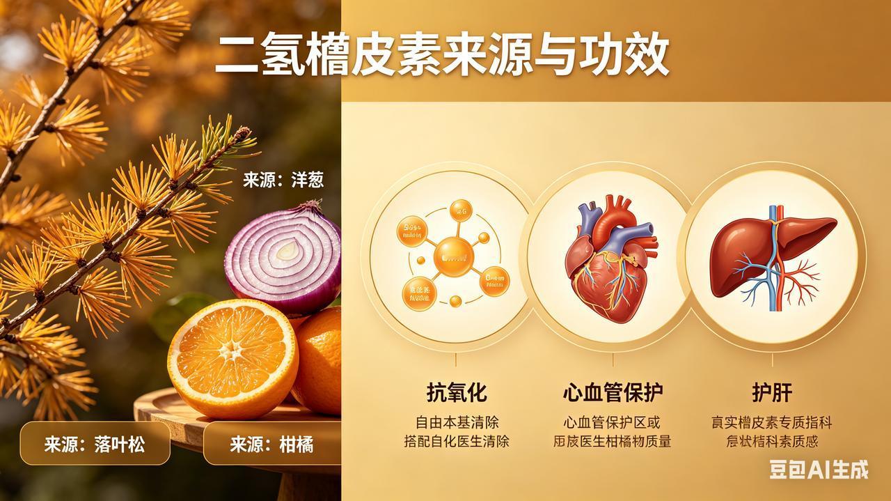 二氢槲皮素,又名花旗松素,是一种天然存在于落叶松、洋葱、柑橘等植物中的黄酮类化合物。它对人体的好处主要体现在以下几个方面。