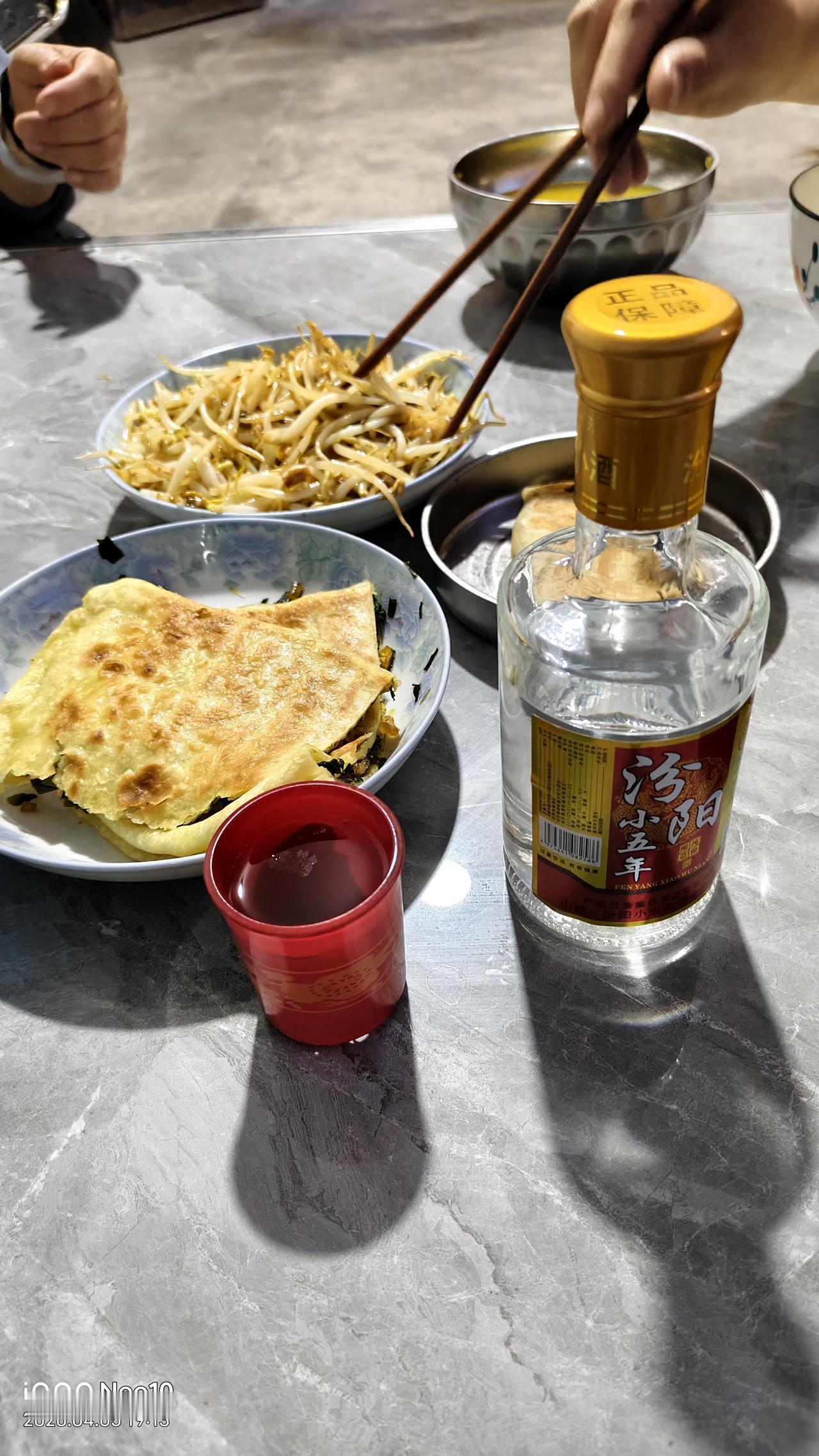 给大家分享我今日早歺餐,小酒一杯吃烙饼