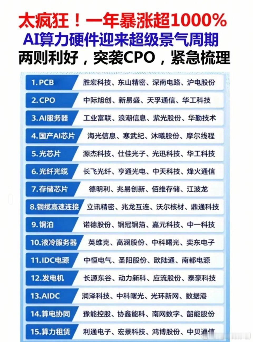 当前AI算力硬件迎来超级景气周期,从PCB、CPO到AI服务器、光芯片,全产业链