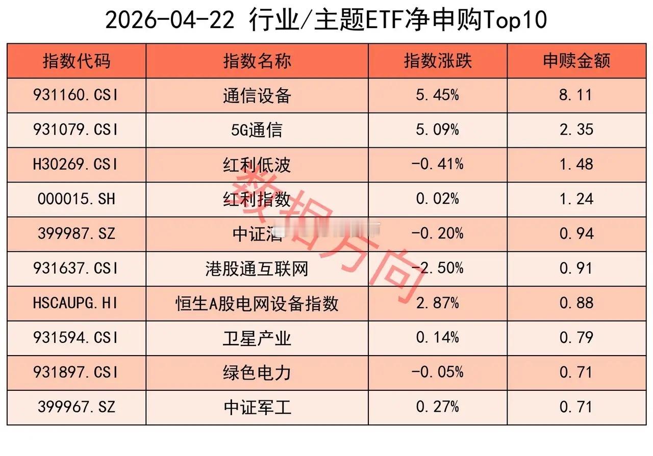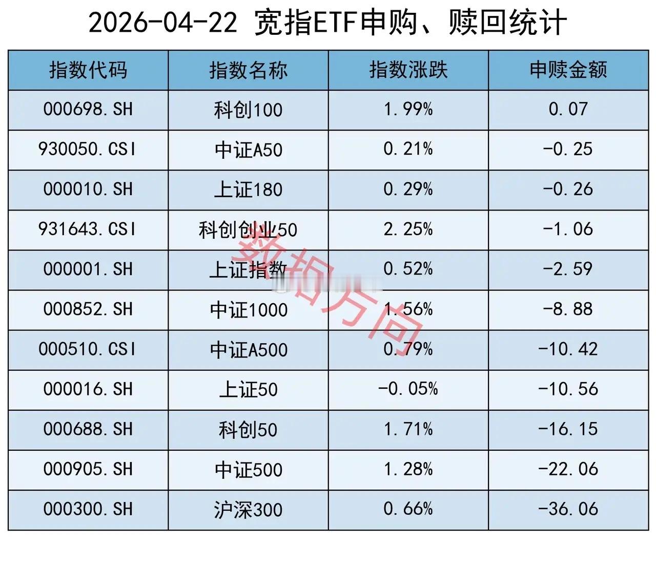 沪深300指数(-36.06亿)、中证500指数(-22.06亿),净赎回分别超过30亿、20亿。