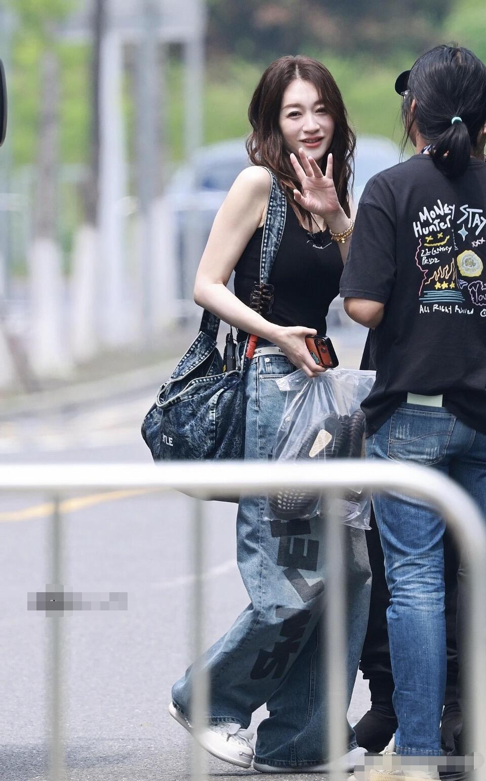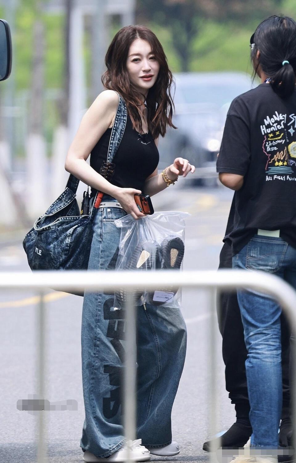 李小冉身材太好了,这次的穿搭随性又精致,松弛感满满!修身黑色吊带背心,搭配侧边带字母印花的水洗阔腿牛仔裤,宽松版型休闲遮肉,垂坠感面料更增添走路带风的慵懒气质。搭配同材质同水洗风格的牛仔托特大包,风格统一又很有复古氛围。小白鞋中和了牛仔的厚重感,整体松弛又显比例,简单舒适又很有气质。