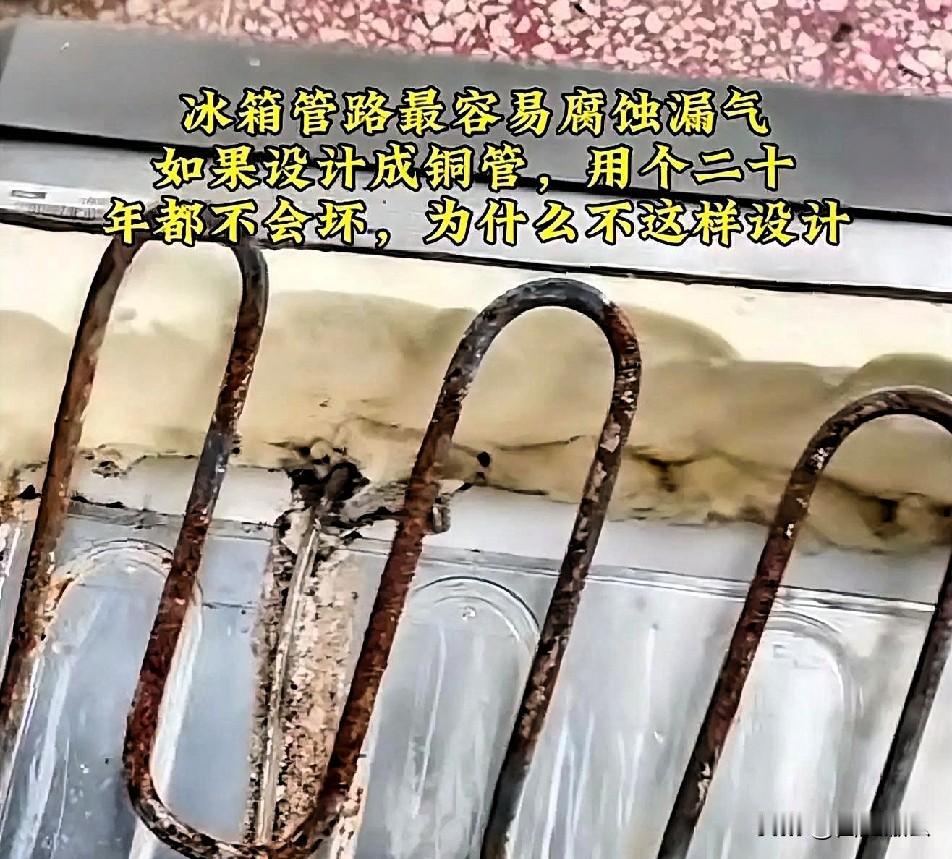 因为冰箱的管路,你在外面是看不到的,被厚厚的聚氨酯发泡层覆盖着。整个国产冰箱的行业标准里,压根就没有告诉你,这个管是用什么做的,但是这根管,极其容易被腐蚀。只有纯铜管才能用得住。